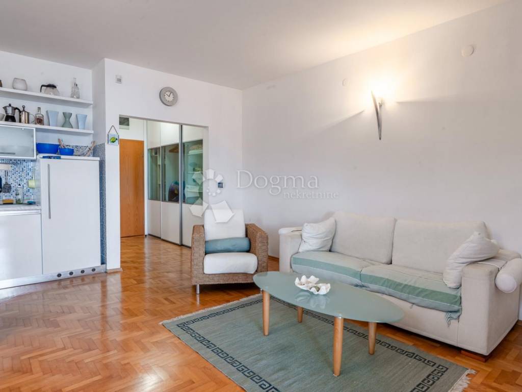 ** Površina: 51,23 m ** Raspored: 1 spavaća soba + prostrani dnevni boravak ** Balkon: Veliki balkon s panoramskim pogledom na more savršen za jutarnju kavu ili romantične večeri ** Lokacija: Mirno okruženje, samo nekoliko minuta šetnje do plaže i svih sadržaja ** Gradnja: Novija gradnja s visokim standardom kvalitete i modernim materijalima ** Zgrada: Manja stambena zgrada s nekoliko jedinica privatnost i mir zagarantirani