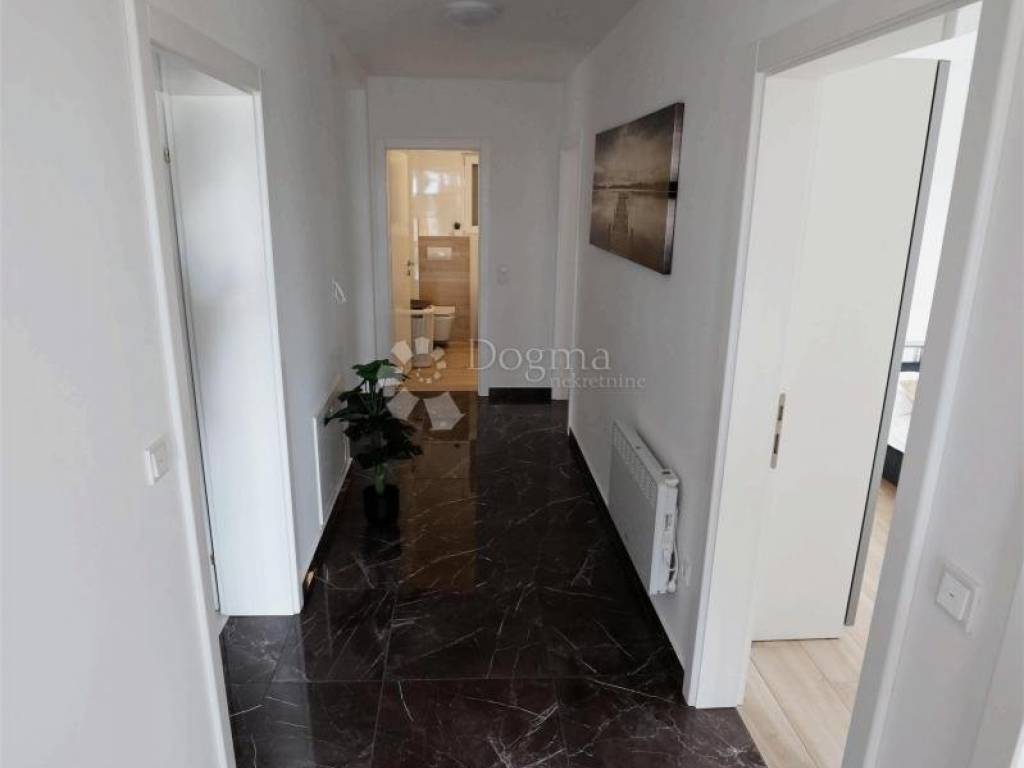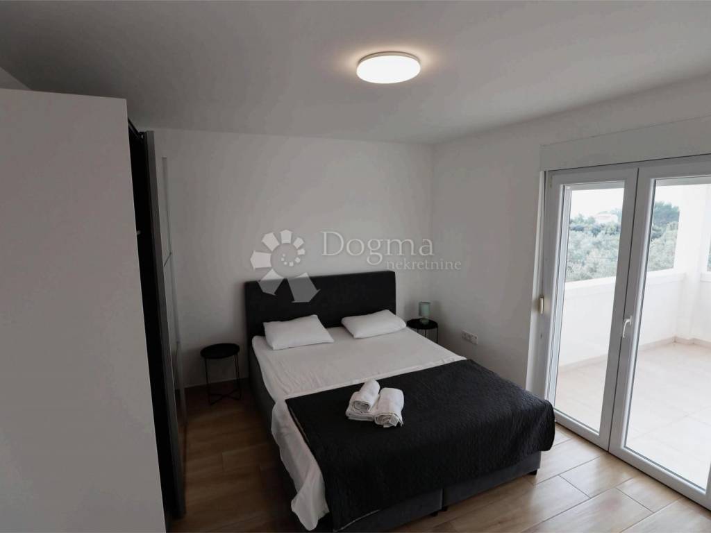 Trosobni stan smješten u manjoj zgradi s četiri stana, u mirnom dijelu Sukošana, s pogledom na prostrane maslinike. Stan se nalazi na visokom prizemlju zgrade i obuhvaća sljedeće prostorije: hodnik, četiri sobe, kupaonicu, WC, kuhinju i dnevni boravak, ukupne stvarne tlocrtne površine 103,35 m.
