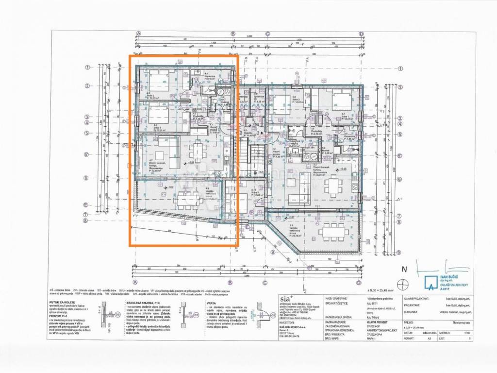 Sadržaj: Dnevni boravak, kuhinja i blagovaonica, tri spavaće sobe, dvije kupaonice, predsoblje, hodnik, spremište i vanjska natkrivena terasa.