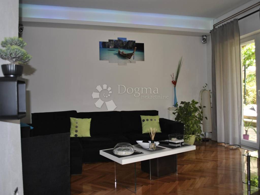 Stan se prostire na 77,55 m i smješten je na 1. katu manje stambene zgrade, u ulici bez restorana i kafića, što garantira mir i privatnost. Ulaz u stan vodi kroz predvorje s prostorom za garderobu, a zatim dolazimo do prostranog dnevnog boravka koncipiranog u otvorenom planu. Ovaj prostor preplavljen je prirodnom svjetlošću, stvarajući ugodnu atmosferu obiteljskog doma. Iz dnevnog boravka izlazi se na natkrivenu ljetnu terasu koja je savršeno mjesto za opuštanje i uživanje u mirnom okruženju.