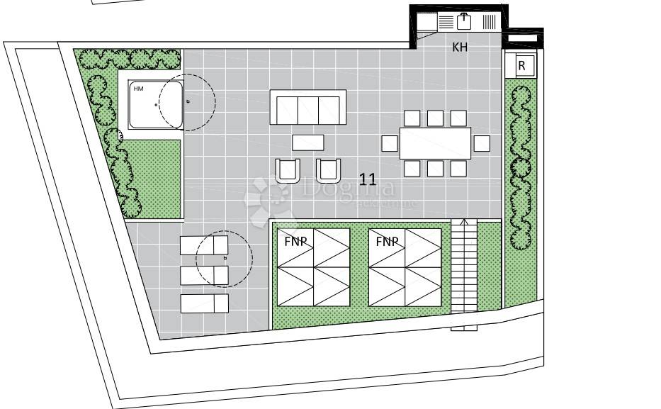 Napomena: fotonaponski panela, hidromasažna kada, roštilj i kuhinja su prikazani ilustrativno kao primjer mogućeg uređenja krovne terase.