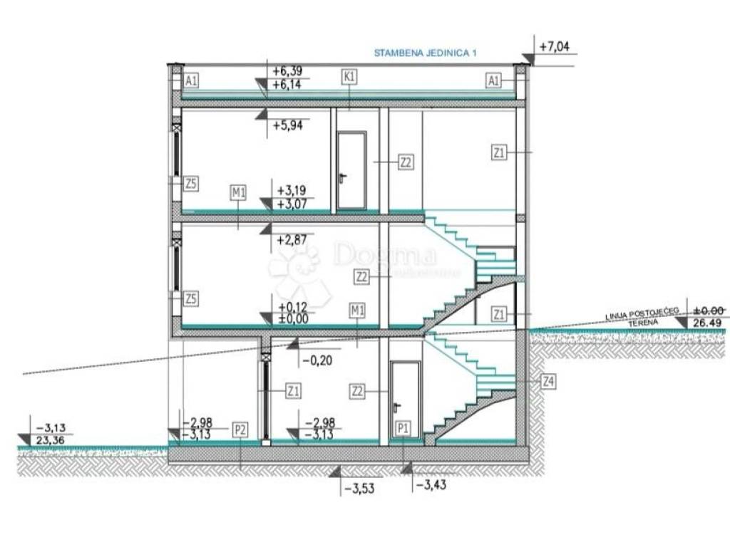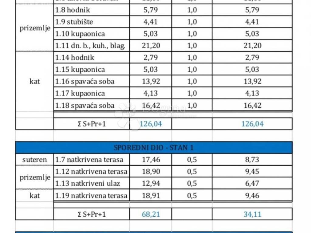 Suteren (47,32 m): je jednosoban stan koji se sastoji od: hodnika, ostave, kupaonice, spavaće sobe, te kuhinje, blagovaonice i dnevnog boravka s izlazom na natkrivenu terasu