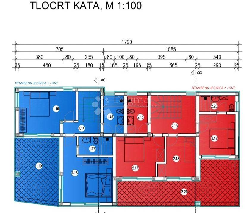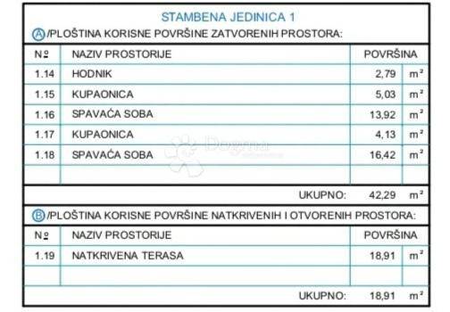 Kat (44,29 m): obuhvaća: hodnik, dvije spavaće sobe s garderobom (a edna i sa vlastitom kupaonicom) i dodatnu kupaonicu.