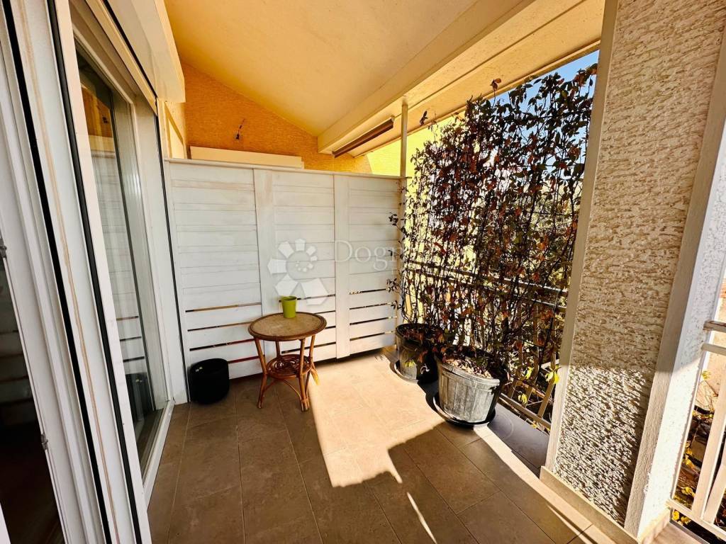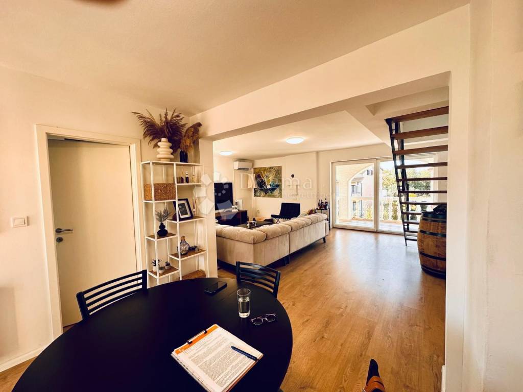 Prostrani dnevni boravak s izlazom na prekrasnu terasu koja nudi pogled na okolinu, kuhinja s blagovaonicom s izlazom na dodatnu terasu, jedna spavaća soba i moderna kupaonica.