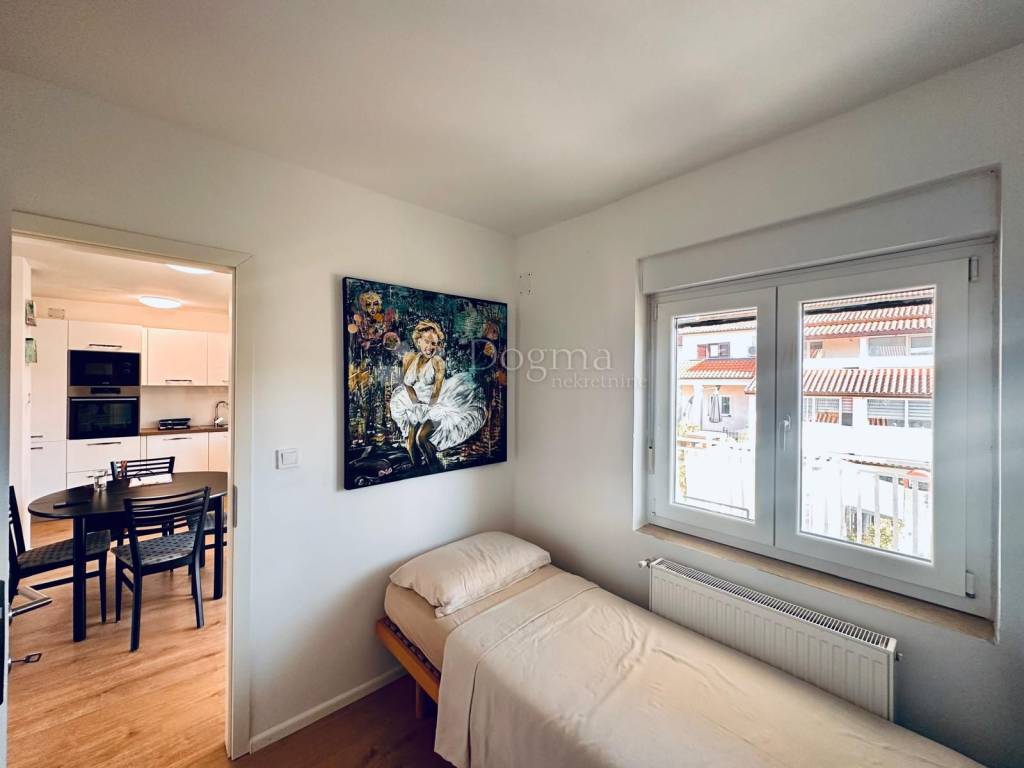 Dvije spavaće sobe, svaka s dovoljno prostora i prirodne svjetlosti te dodatna kupaonica.