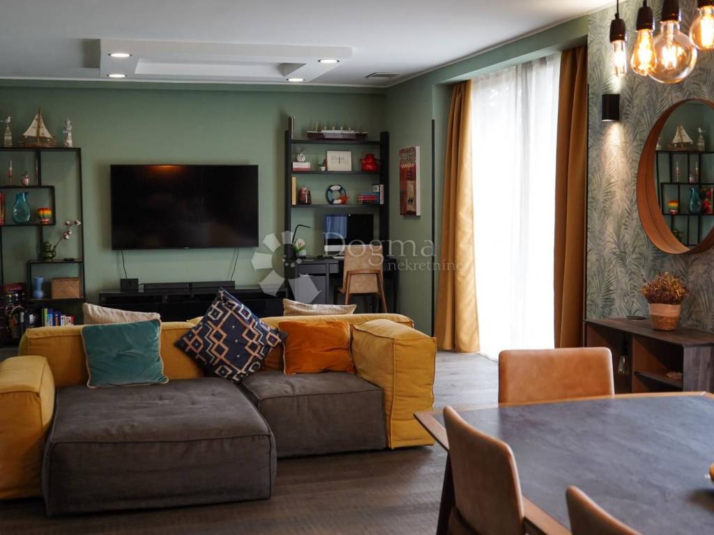 Stan je pažljivo osmišljen te uključuje prostrani dnevni boravak s modernom kuhinjom i blagovaonicom, dvije udobne spavaće sobe, elegantnu kupaonicu, funkcionalan hodnik i privlačan balkon. Južna orijentacija dnevnog boravka omogućava obilje prirodne svjetlosti te pruža prekrasan pogled na okolno zelenilo.