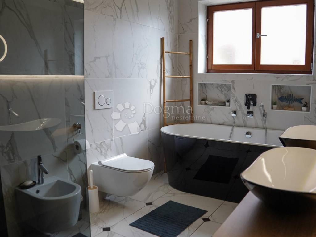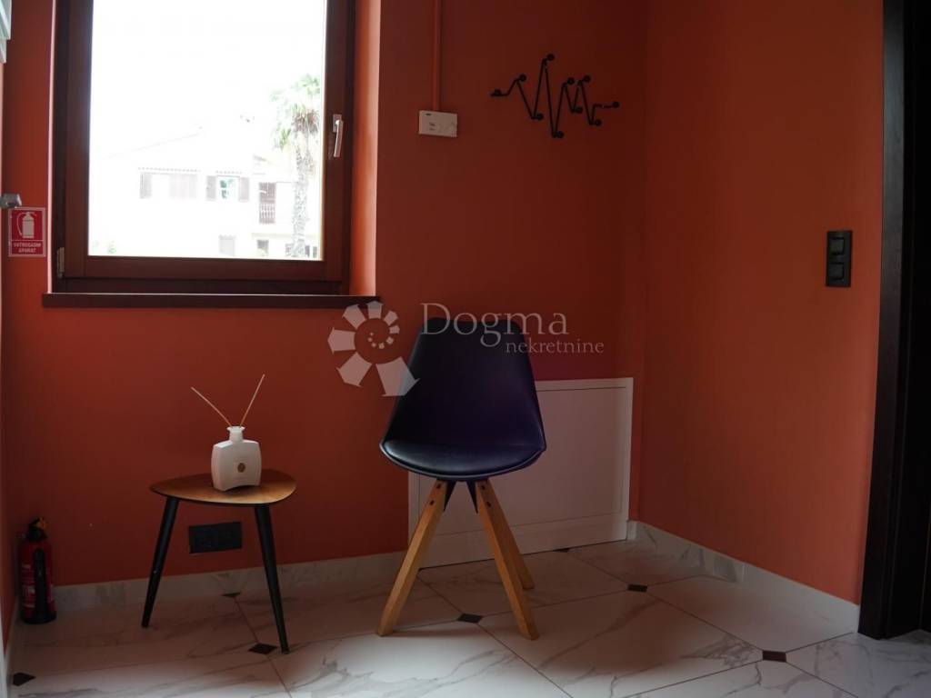 Predstavljamo vam elegantan dvosoban stan smješten na prvom katu obiteljske kuće u prekrasnom Rovinju, udaljen samo nekoliko minuta hoda od obale. Kuća je izgrađena 1975. godine, dok je stan potpuno obnovljen 2017., obogaćen modernim i suvremenim elementima. Stan se nalazi u kući s tri stambene jedinice, povezane kroz unutarnje stepenište, što mu daje privatnost i praktičnost. Promijenjene su sve instalacije , te stan ima zidno i podno grijanje.