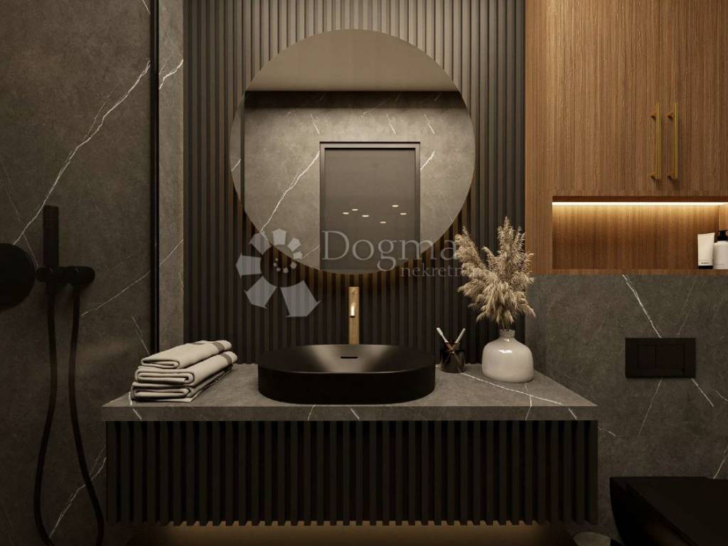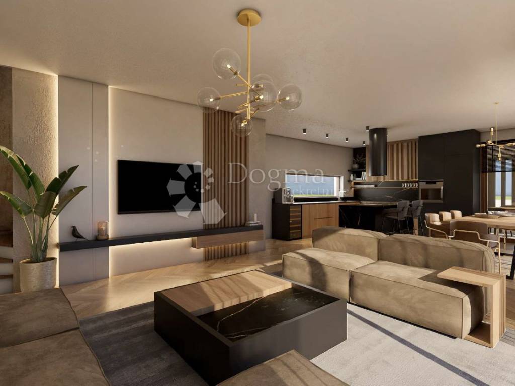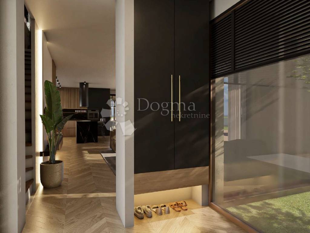 Moderna villa u izgradnji prostire se na 205 m te nudi udobnost i privatnost na okućnici površine 680 m. Vila se sastoji od dva kata i sadrži niz sadržaja osmišljenih za maksimalan komfor budućih vlasnika.