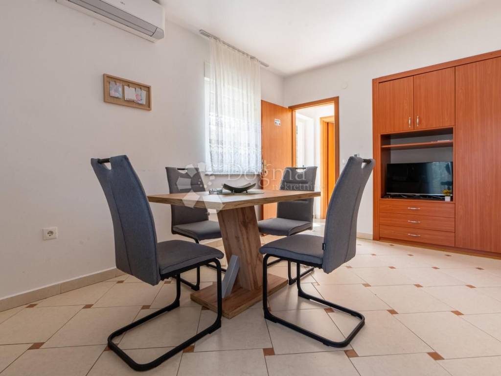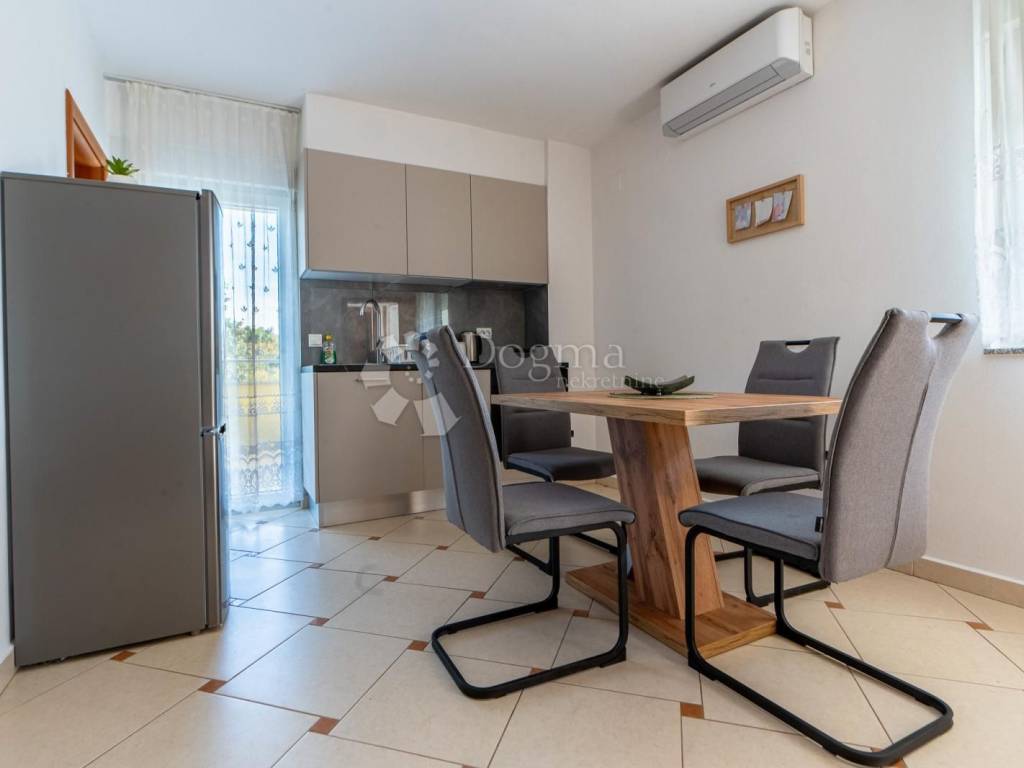 Nova kuhinja. Sve uredno i čisto. Stan ima balkon s pogledom na more te zajedničku terasu.