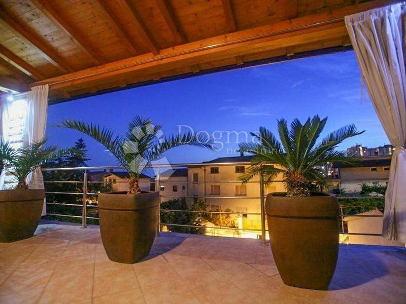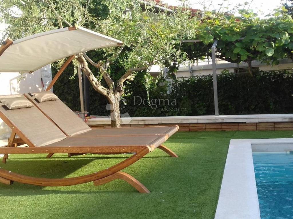 Ova vila vam nudi apsolutnu privatnost. U vrtu se nalazi bazen od 25 m2, kvalitetni vrtni namještaj te malo igralište. Forte ove vile je ogromna terasa koja Vam pruža fantastičan pogled na grad i more, i idealno je mjesto za obrok na otvorenom.
