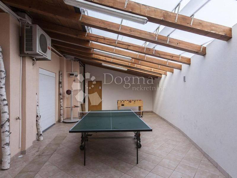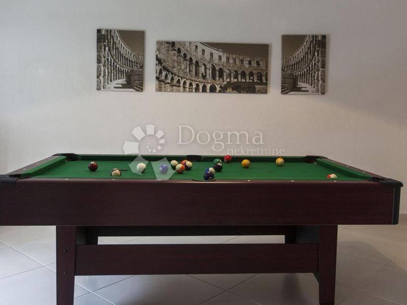 Ova luksuzna vila se nalazi na vrlo prikladnom mjestu u samom srcu Pule. Ova prekrasna kuća veličine 430m2 koja se nalazi na imanju od 800m2, te sadrži dva velika dnevna boravka , dvije kuhinje, 7 spavaćih soba, 4 kupaonice, te jednu s masažnim kupeljom, 1 vanjski roštilj i 1 unutarnji kamin, stolni nogomet, električni pikado, stolni tenis, bilijar i infracrvenu saunu.