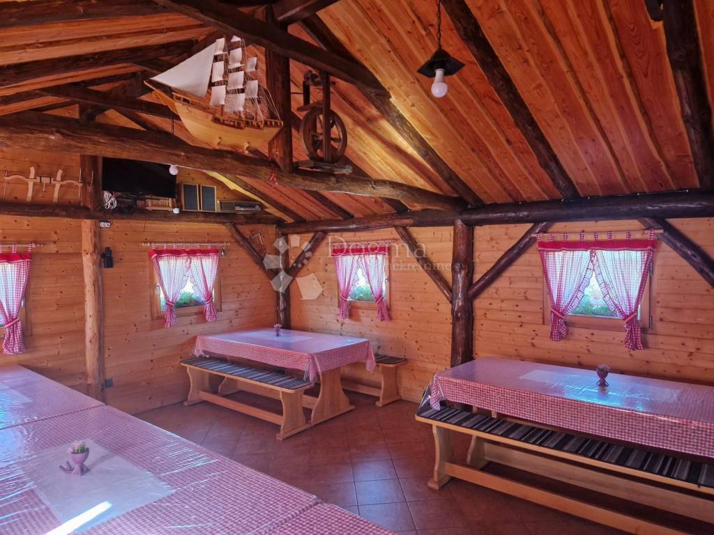 Drugi objekt je prizemlje 39 m2 sa stolovima i klupama za do 40 osoba te velikom zidanom pečenjarom za pripremu raznih delicija.