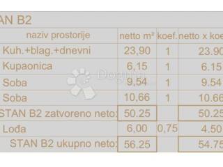 Stan se sastoji od 2 spavaće sobe, kuhinje, blagavaonice, ulaznog hodnika,dnevnog boravka i balkona.