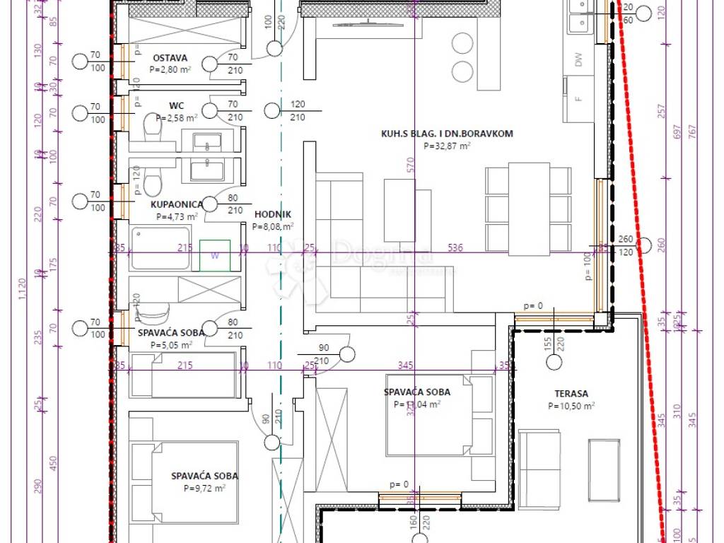 Unutar stana, velika kuhinja s blagovaonicom opremljena je modernim aparatima i nudi obilje prostora za kuhanje i druženje s obitelji i prijateljima. Svijetli i prostrani dnevni boravak idealan je za opuštanje nakon napornog dana, pružajući udobnost i toplinu doma.