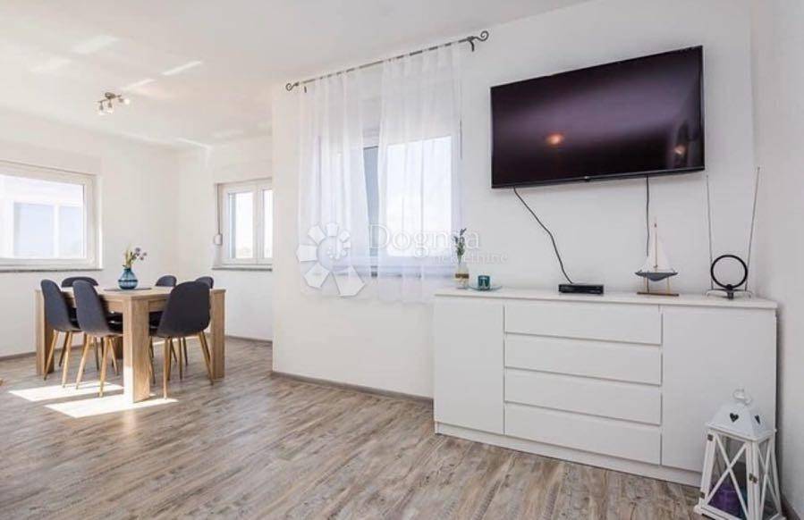 I. Apartman se sastoji od ulaza, hodnika, kuhinje s blagovaonicom, dnevnog boravka s velikom terasom od 30m2 s pogledom na Velebit, kupatilo i 2 spavaće sobe.