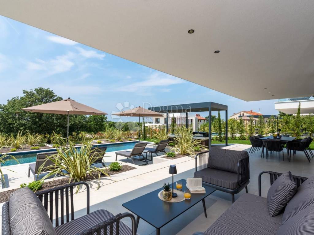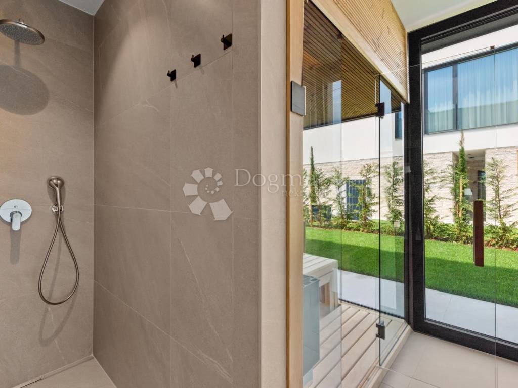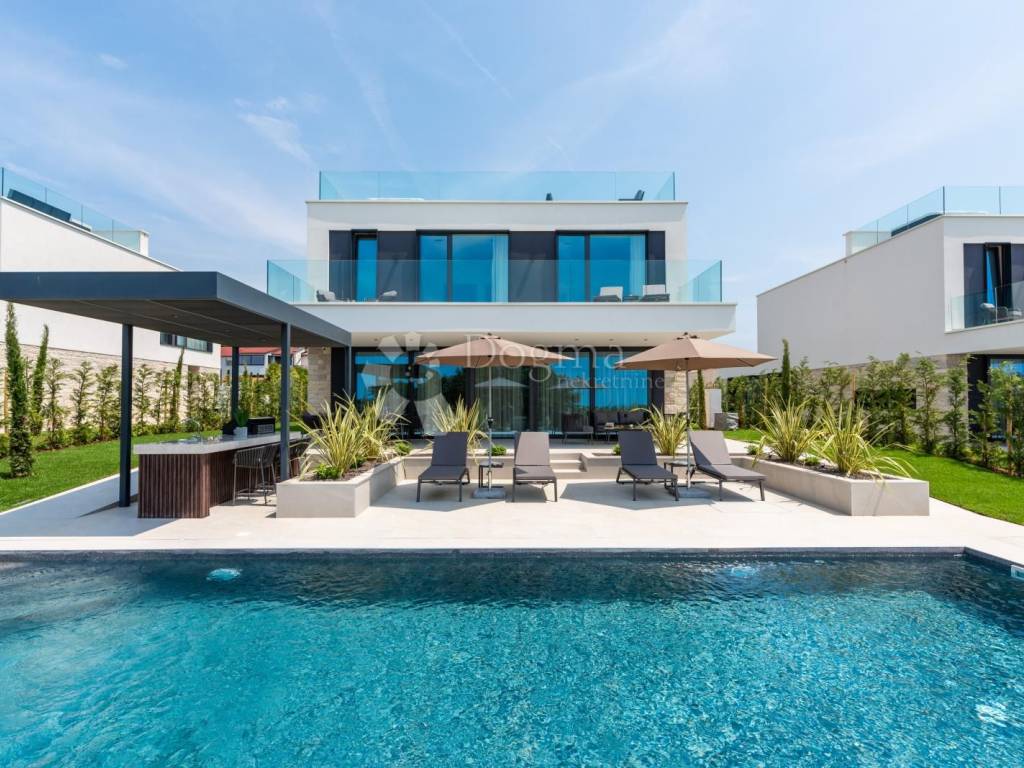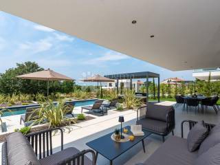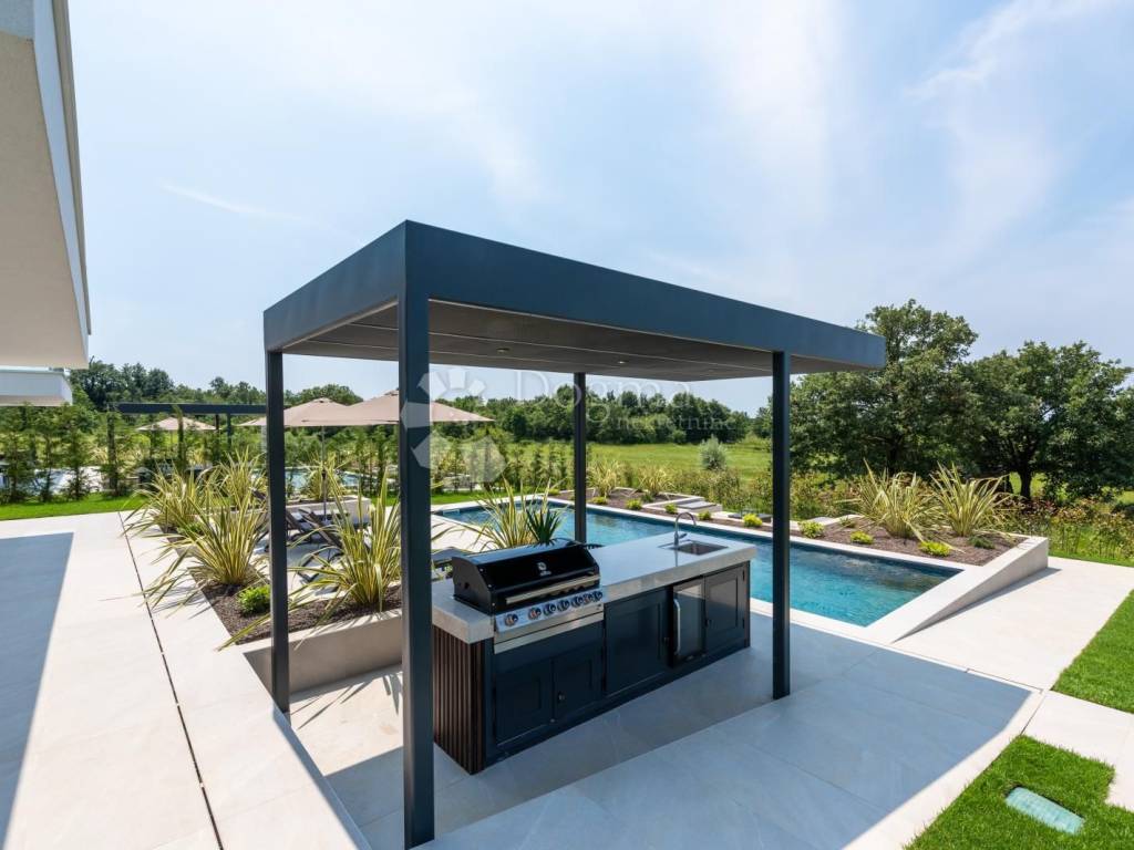 Okoliš vile je pažljivo uređen kako bi se omogućio užitak na otvorenom. Tu se nalazi prostrani vanjski grijani bazen veličine 36 m2 (dizalica topline) sa dekorativnim kulirom, sunčalište za opuštanje i sunčanje, natkrivena terasa.