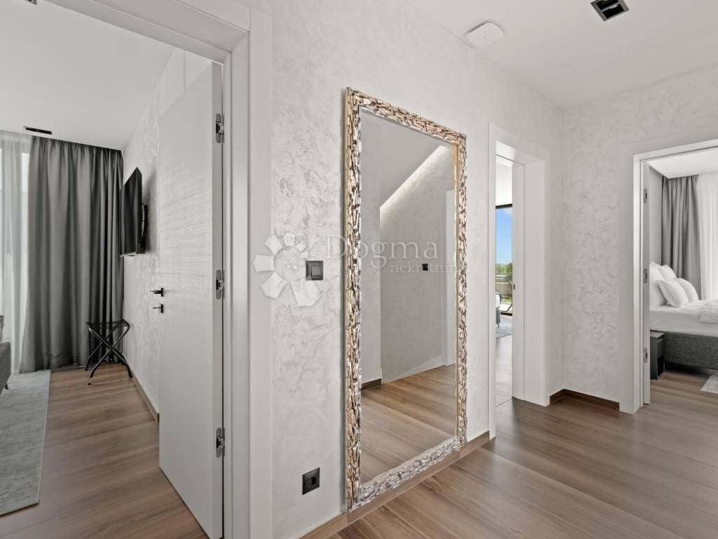 Prizemlje se sastoji od ulaznog predprostora, spavaće sobe sa kupaonom, stubišta za pristup prvom katu i krovnoj terasi, dnevnog boravka sa bio kaminom za potpuno ugođaj, opremljen vrhunskim talijanskim namještajem marke Tomasella, Sedia italia, Veneta Cucine, sjedeća garnitura marke Natuzzi.