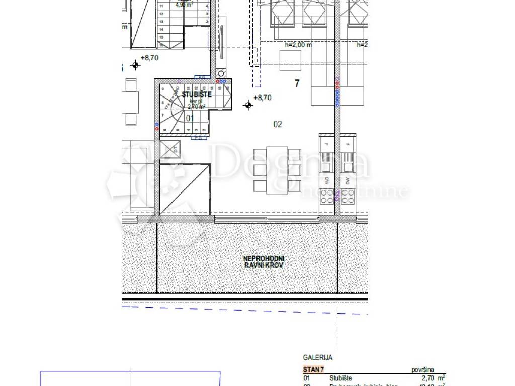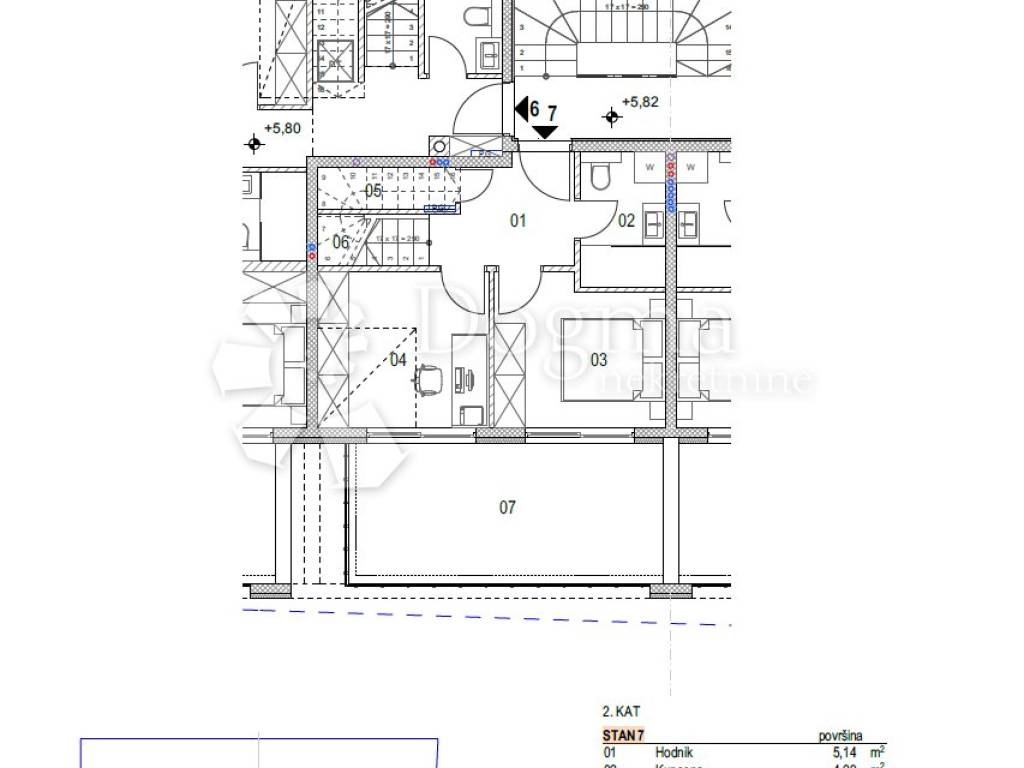 Na prodaju je dvoetažni stan s ukupnom površinom od 93.96m2, smješten na vrhunskoj lokaciji. Ovaj prostrani stan nudi praktičan raspored prostorija na dvije etaže. Prva etaža ovog stana sastoji se od spavaće sobe, kupaonice, radne sobe i praktične garderobe. Posebno je istaknuta terasa površine 16.34m2 koja pruža prostor za opuštanje i uživanje na otvorenom, sa pogledom na more i na okolicu. Druga etaža obuhvaća svijetli dnevni boravak, blagovaonicu i kuhinju. Ova etaža, smještena na vrhu zgrade s prozorima okrenutim na sjeverozapad i na jugoistok pruža ugodan prostor za druženje s obitelji i prijateljima, kao i za svakodnevne aktivnosti.