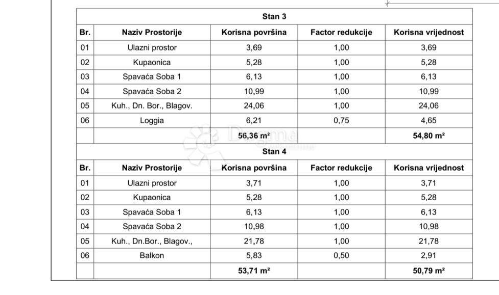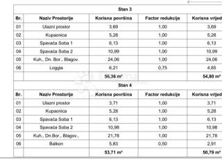 Stan će se nalaziti na 2. katu stambene zgrade, ukupne površine 50.78 m. Sastoji se od hodnika, 2 spavaće sobe, kupaonice, kuhinje s blagovaonicom i dnevnim boravkom te terasom. Stan će biti opremljen keramičkim pločicama i sanitarijama u kupaonici.