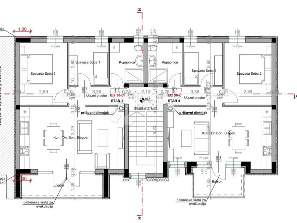 Stan će se nalaziti na 2. katu stambene zgrade, ukupne površine 54.80 m. Sastoji se od hodnika, 2 spavaće sobe, kupaonice, kuhinje s blagovaonicom i dnevnim boravkom te terasom. Stan će biti opremljen keramičkim pločicama i sanitarijama u kupaonici.
