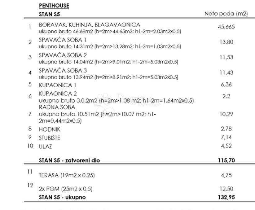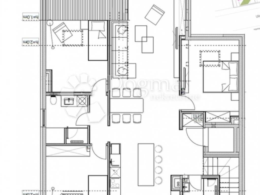 Svijetla visina stropova je 270cm, podno grijanje i hlađenje s dizalicama topline sa zasebnom regulacijom u svakoj sobi.