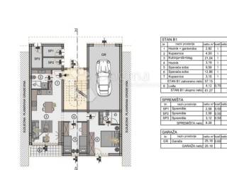 * Stan se sastoji od 60,24m2, dok su u cijenu uračunata 2parking mjesta na okućnici zgrade (reducirane površine 2,50m2), te i spremište u prizemlju zgrade od bruto površine 2.58m2 (reducirana površina 1.29m2), što je ukupno 66.53m2