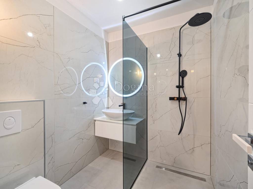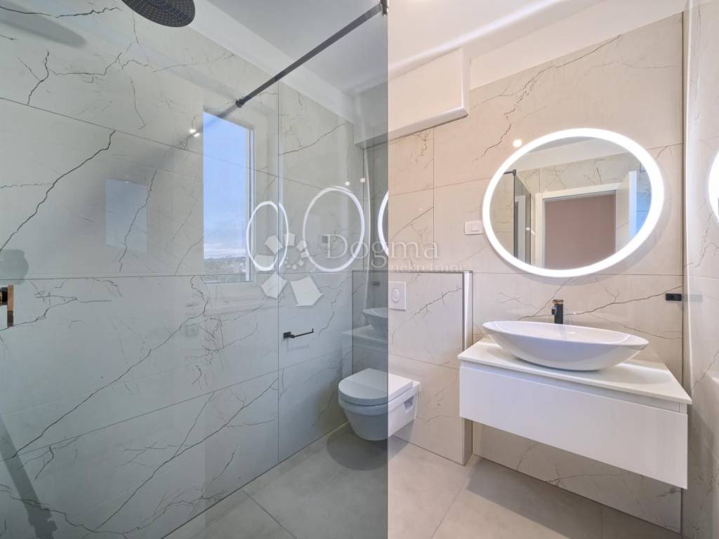 Stan ima ukupnu stambenu površinu od 112.39m2 i sastoji se od prostranog dnevnog dijela s kuhinjom i blagovaonicom, četiri spavaće sobe, 3 kupaonice, gostinjskog wc-a te dvije terasa od 10,45m2 i 11,25 m2 s predivnim pogledom na more.