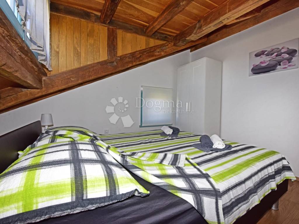 Sastoji se od prostrane kuhinje s blagavaonicom i dnevnim boravkom, kupaonice, dvije spavaće sobe i velike krovne terase od oko dvadeset kvadrata s koje se pruža lijep pogled na more i okolicu.
