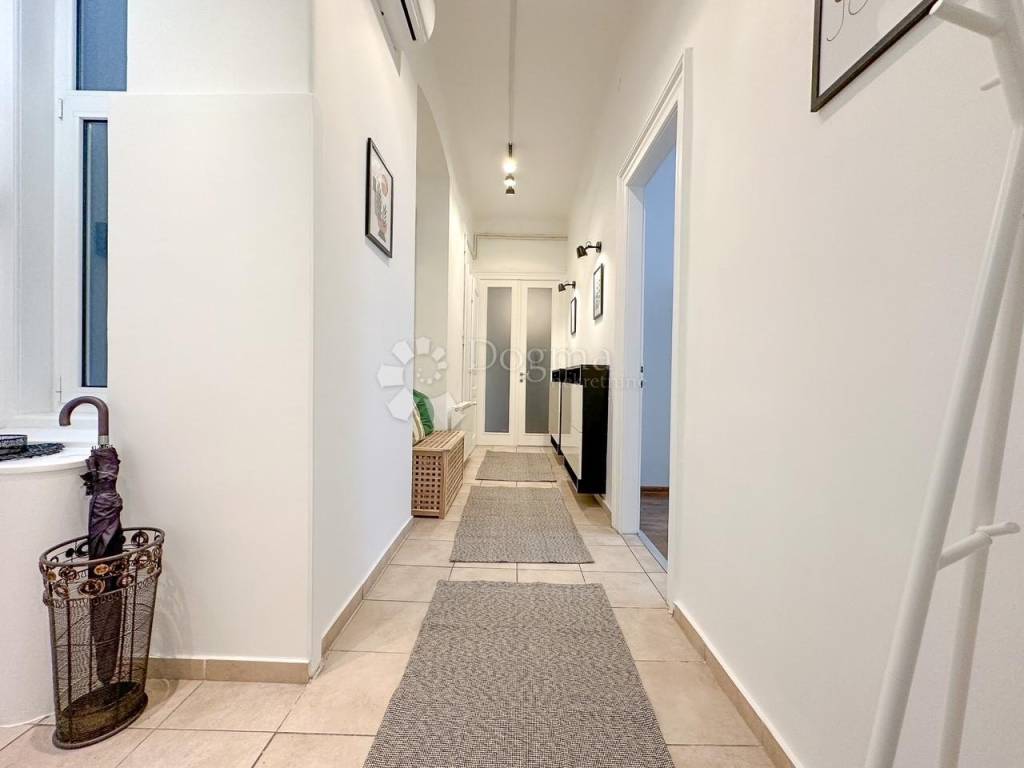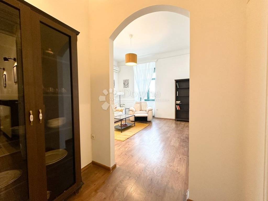 U samom centru Rijeke iznajmljujemo vrlo lijep stan površine 96 m2. Nalazi se na dobroj lokaciji. Idealne je katnosti jer do stana imate samo kat i pol, a visina ste trećeg kata. Cijeli stan je jugozapadne orijentacije i prepun svijetla. Sastoji se od tri vrlo komforne sobe, hodnika, kupaonice, wc-a, otvorenog dnevnog djela a kuhinjom i blagovaonicom. Kompletno je i kvalitetno opremljen i namješten, s lijepim detaljima. Za komforan boravak stan je opremljen etažnim grijanjem i klima uređajima. Stan je idealan za obitelj, studente, poslovne ljude i slično. Iznajmljuje se na duži rok. Ozbiljan najmodavac traži ozbiljne najmoprimce.
