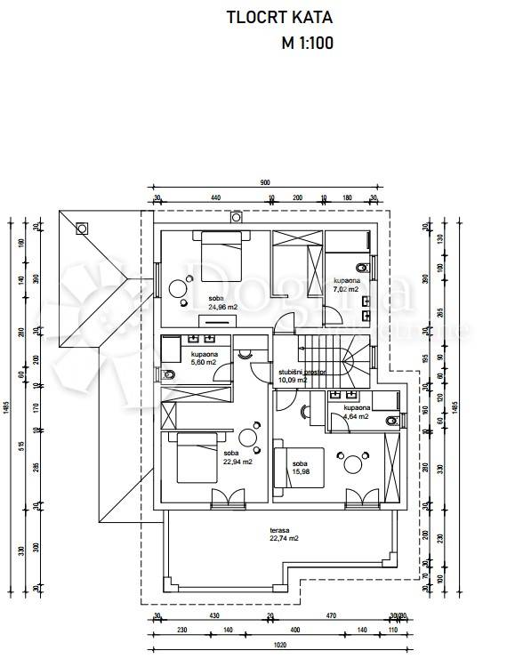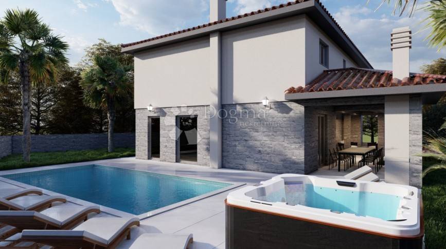 Na velikoj okućnici smjestit će se bazen 32 m2, sunčalište, uređeni vrt te dva parkirna mjesta.