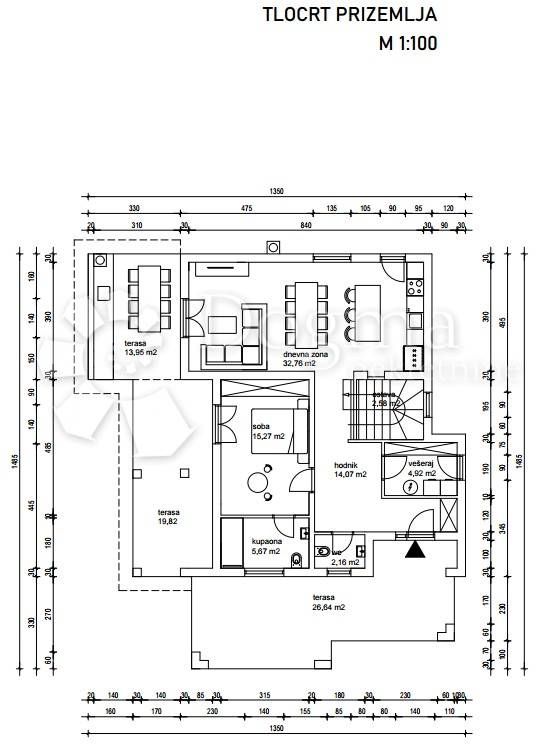 Proteže se na dvije etaže s ukupnom stambenom površinom od 188,08 m2. Prizemlje nudi prostrani dnevni boravak, kuhinju s blagovaonicom, spavaću sobu s vlastitom kupaonicom, hodnik, vešeraj i praktično spremište. Iz prizemlja izlazi se na terasu koja je idealna za uživanje u svježem zraku, bilo da pijete jutarnju kavu ili svjedočite čarobnim zalascima sunca.