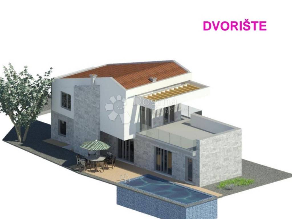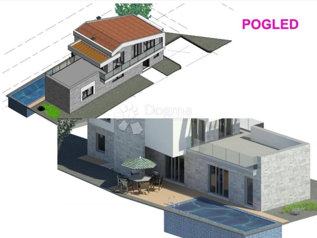 Kuća u izgradnji s bazenom i panoramskim pogledom na more.