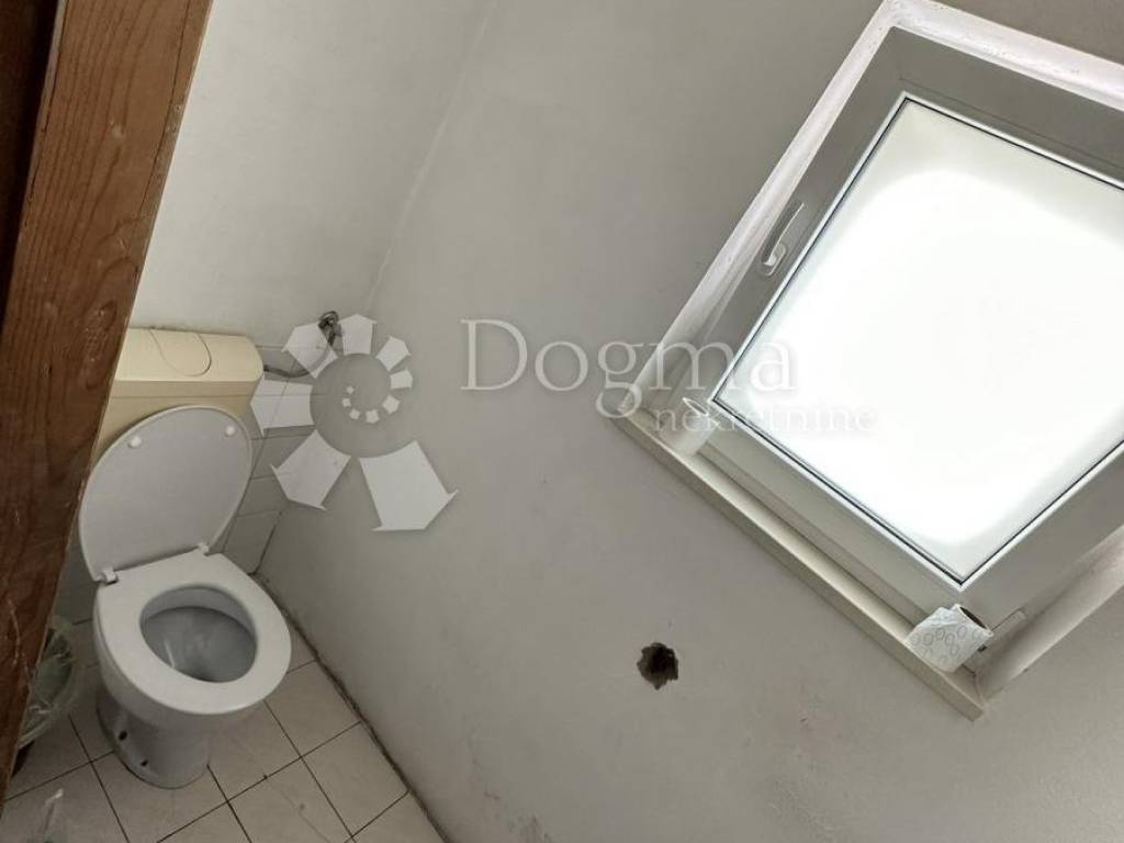 Prodajni dio ima dva ulaza, sanitarni čvor i uredski prostor, sveukupne površine 80 m2.