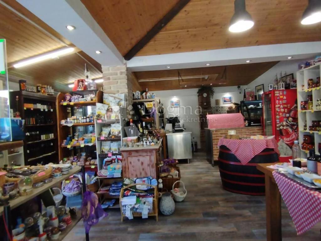 Ovaj prostor sastoji se od dvije glavne prostorije, kao i toaleta. Jedan dio služi kao trgovina sa suvenirima i istarskim proizvodima, dok je drugi prostor namijenjen za degustaciju. U prostoru za degustaciju ističe se veliki kamin s vatrostalnim staklom koji se koristi i za pečenje hrane. Iza samog poslovnog prostora nalazi se pomoćni objekt potpuno opremljen profesionalnom kuhinjom.