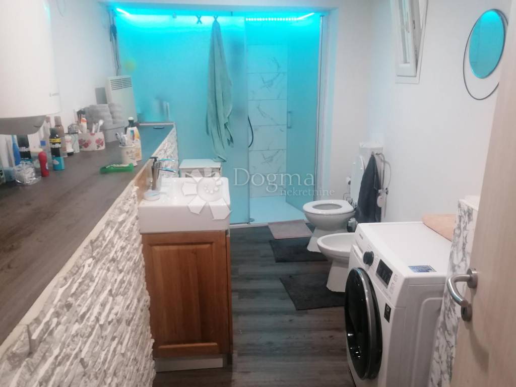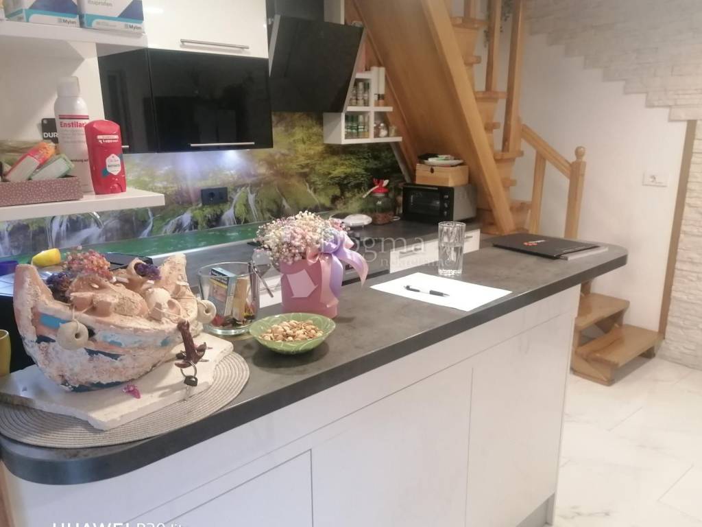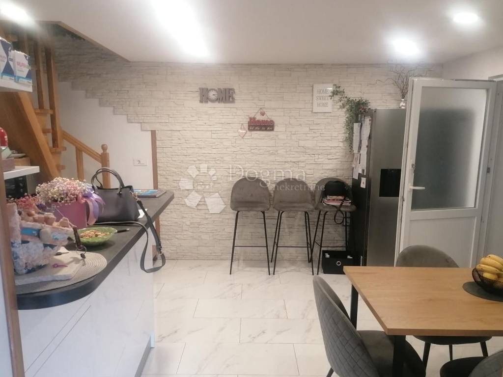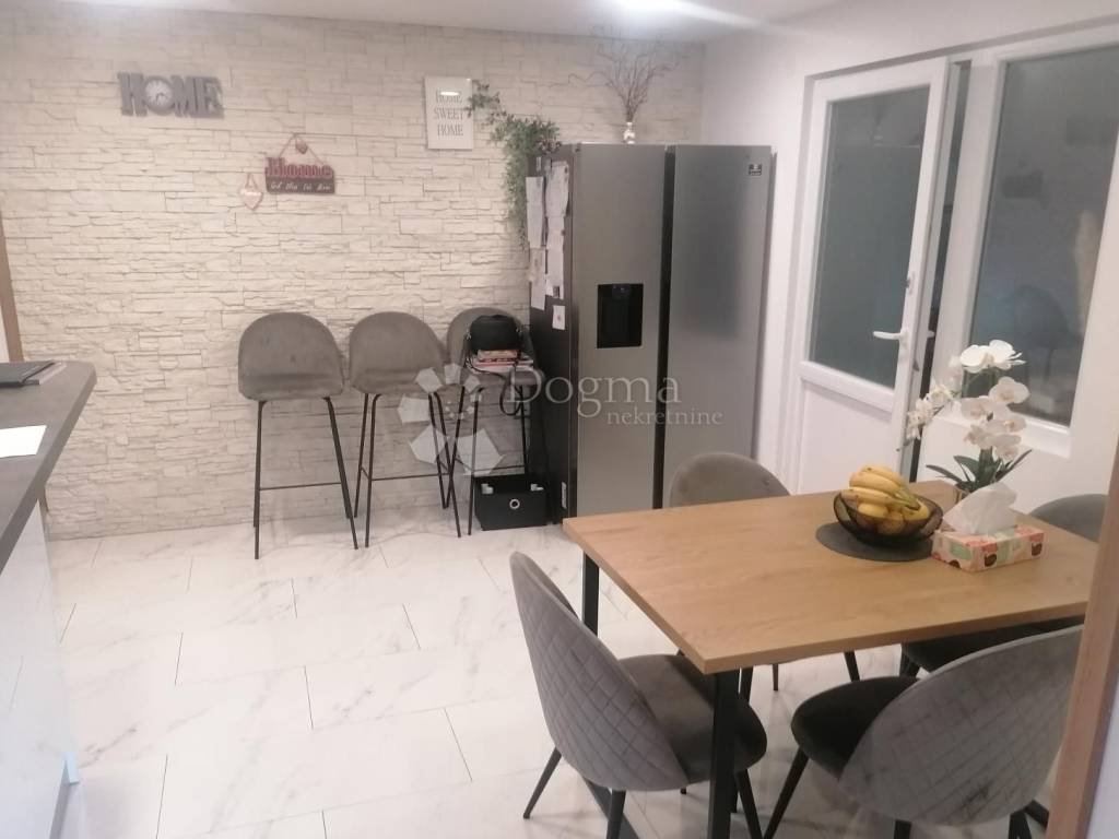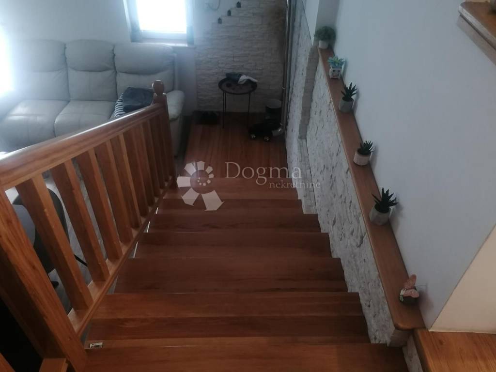 Stambeni dio sastoji se od hodnika, blagavaone i kuhinje, dnevmog boravka sa velikom terasom , kupaone, na katu se nalaze tri spavaće sobe.