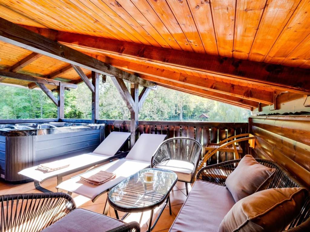 Na natkrivenoj terasi nalazi se jacuzzi s pogledom na kompletan Ranč uz jacuzzi nalazi se sjeeća garnitura, u zasebnoj prostoriji na terasi nalazi se sauna, teretana , garaža i pečenjara.