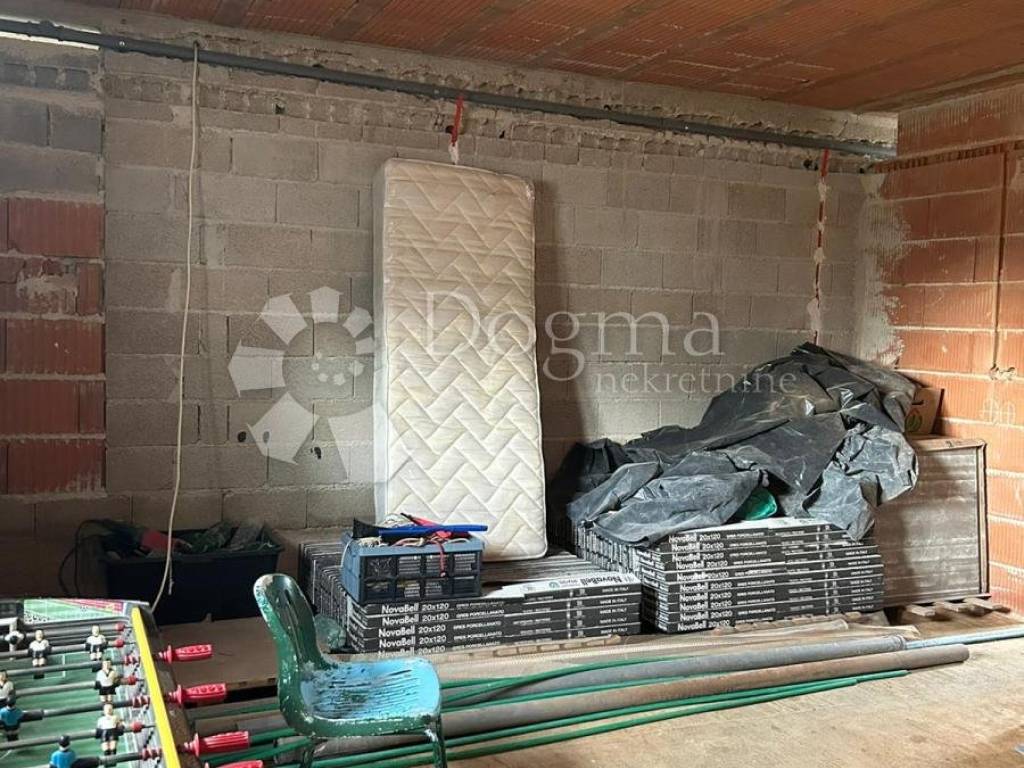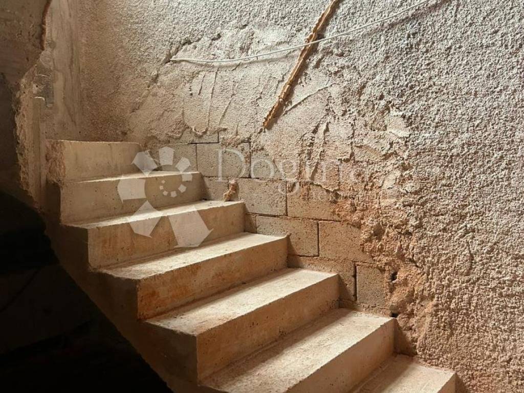 Podrum: Prvi dio kuće je podrum koji se prostire kroz cijelu prvu cjelinu kuće. U podrumu se nalazi konoba s kaminom i kuhinjom, 2 dodatne prostorije, kupatilo i strojarnica. Ovaj dio kuće može biti odvojen kao posebna jedinica s vlastitim ulazom. Također, uz podrum postoji alatnica.