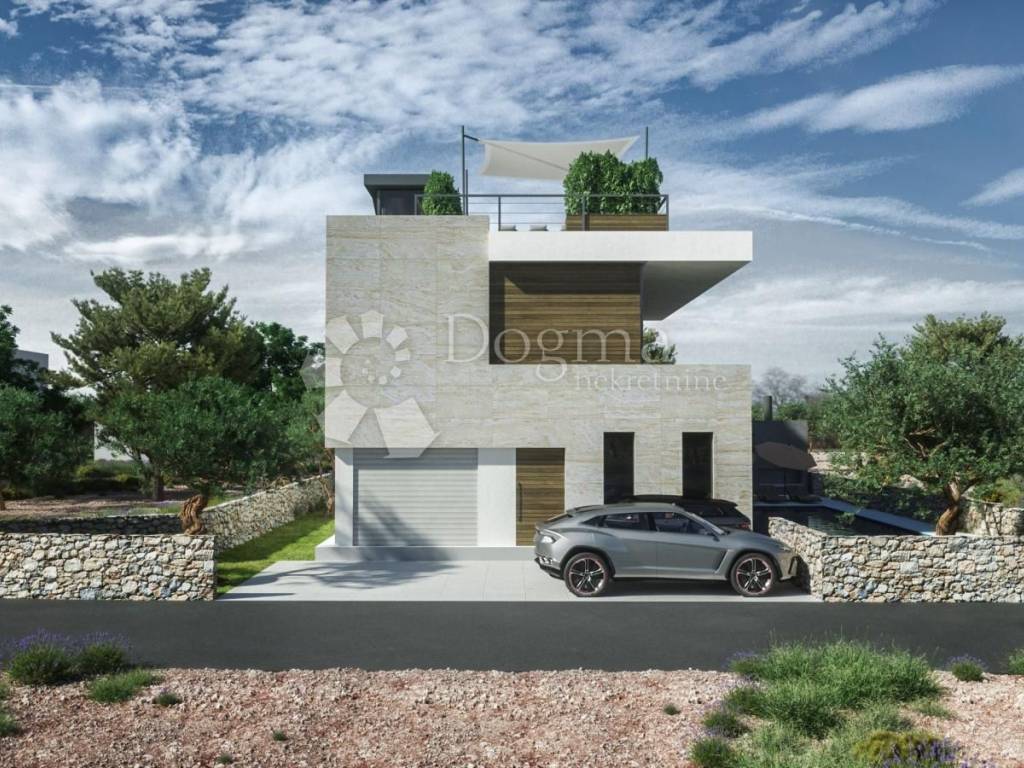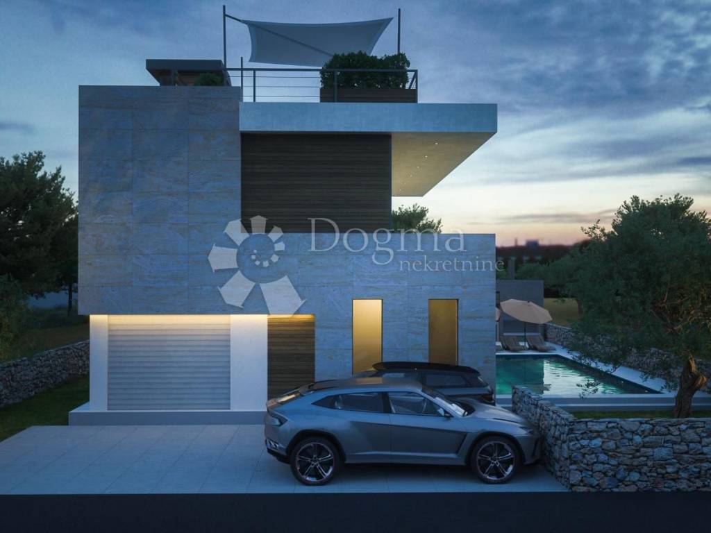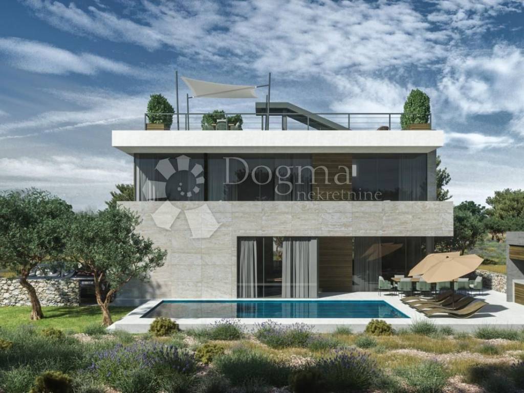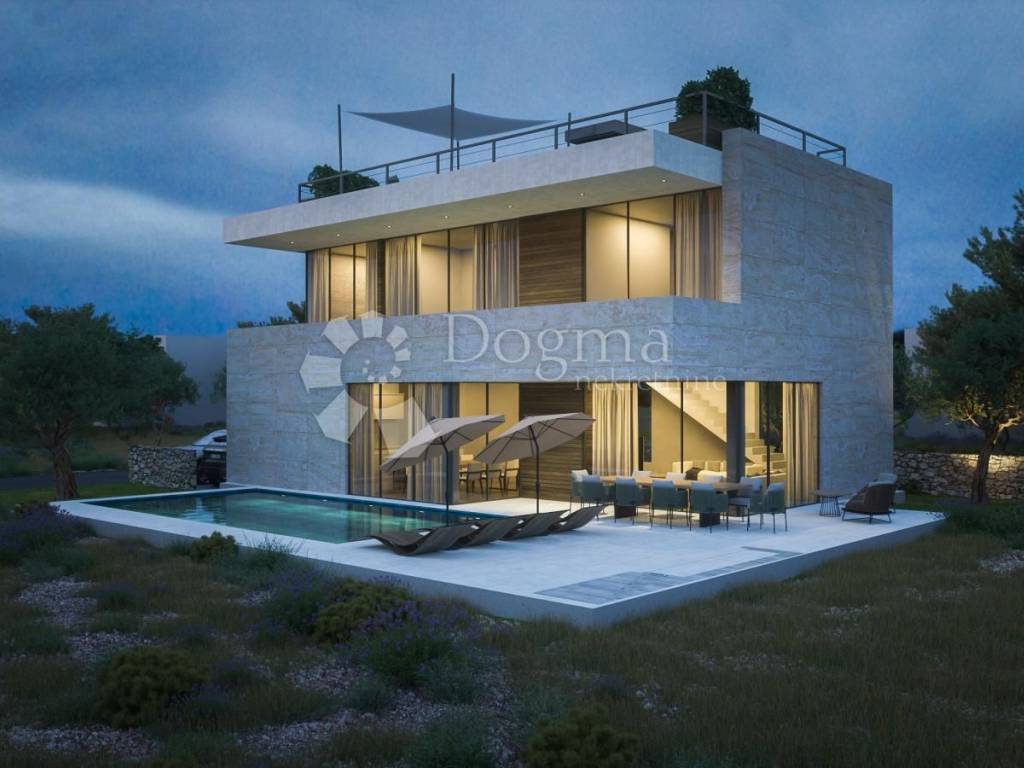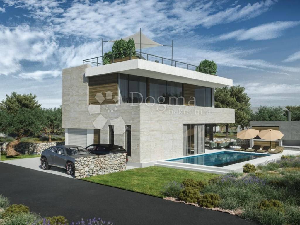Vila se sastoji od prizemlja sa garažom, ulaznim prostorom, garderobom, toaletom, kuhinjom, blagovaonicom i dnevnim boravkom iz kojeg se nastavlja na dvorište sa natkrivenom terasom i bazenom. Na katu su 3 spavaće sobe, svaka sa en suite kupaonicom i pristupom terasi. Na drugom katu je krovna terasa sa sunčalištem i jacuzzijem, sa koje se pogled otvara na kristalno plavo more i otočiće i te vizure doprinose izuzetnosti pozicioniranosti ove nekretnine.
