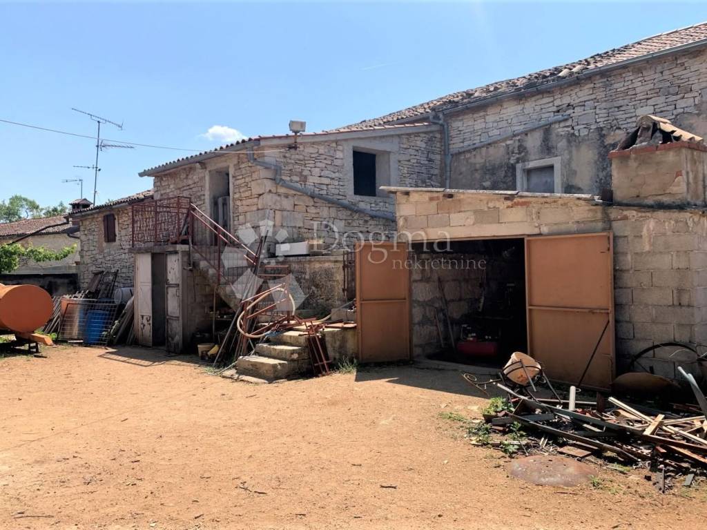 Kompleks koji se sastoji od kamene kuće u nizu, velikog dvorišta i dvije gospodarske zgrade samo 10 km od Rovinja u mirnom i idiličnom okruženju!