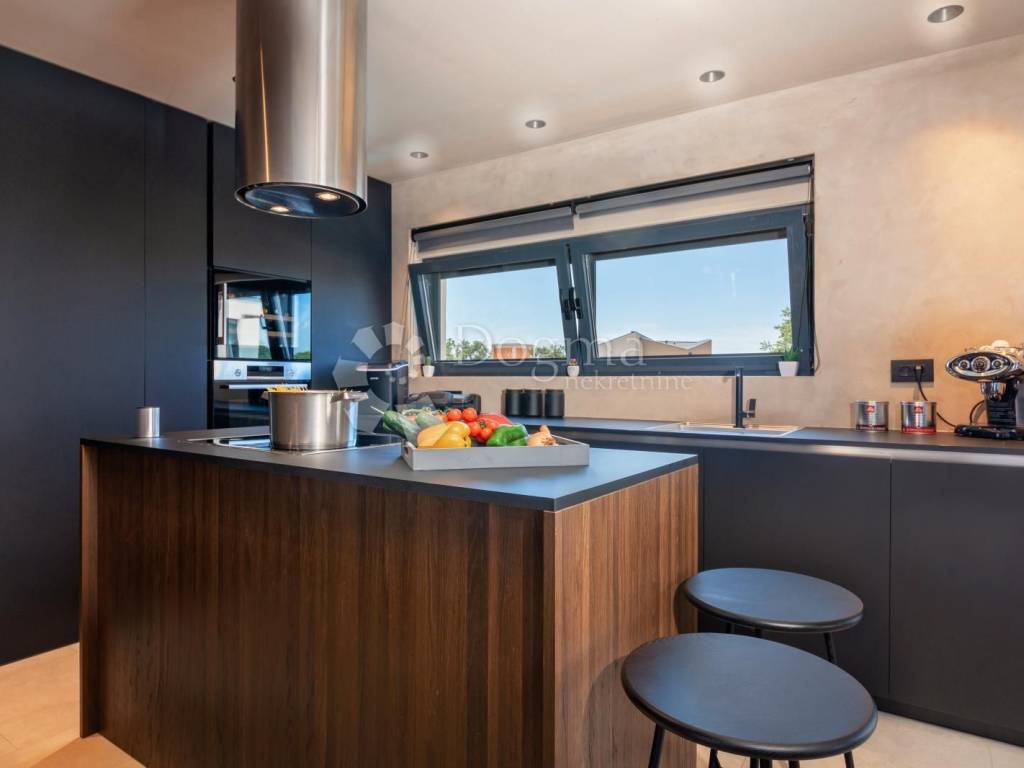 Kada zakoračite u interijer ove spektakularne vile, čeka vas dizajnerski profinjena raskoš, pa ova stambena jedinica donosi impresivan koncept prostranog dnevnog boravka i blagovaonice koje od kuhinje dijeli samo elegantan kamin koji stvara toplinu. ugođaj tijekom zimskih večeri.