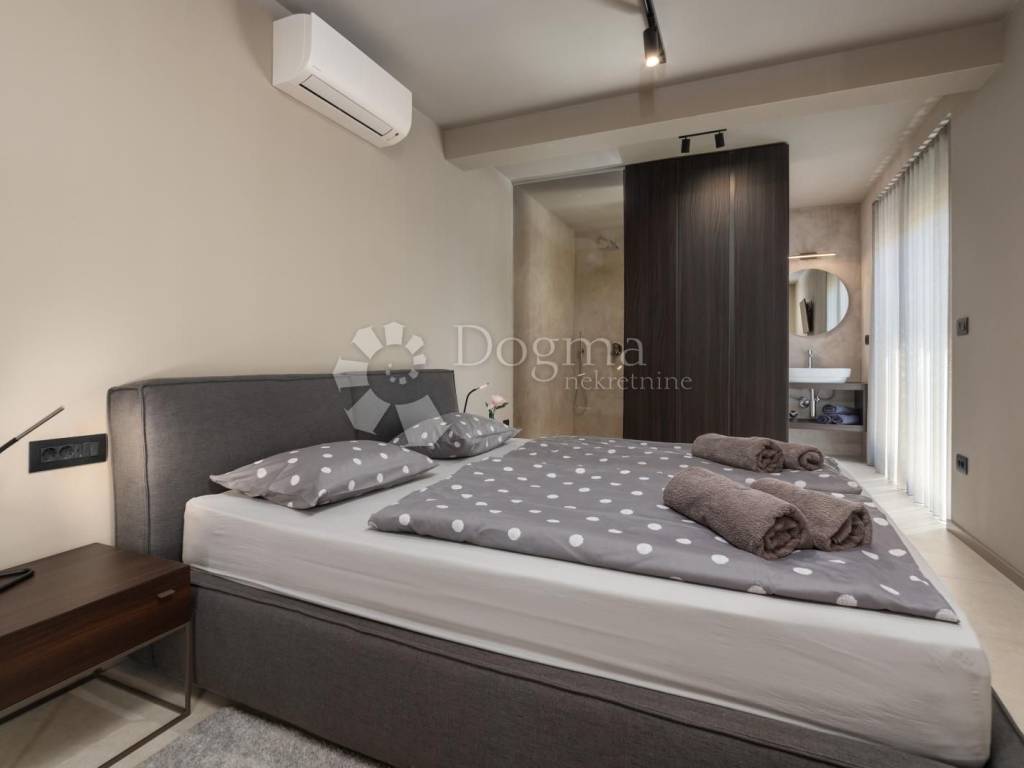 Na katu se nalaze dvije spavaće sobe, dvokrevetna i dječja te još jedna kupaonica. Iz ove stambene jedinice također se pruža prekrasan pogled na more.