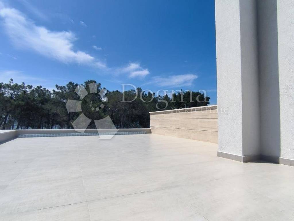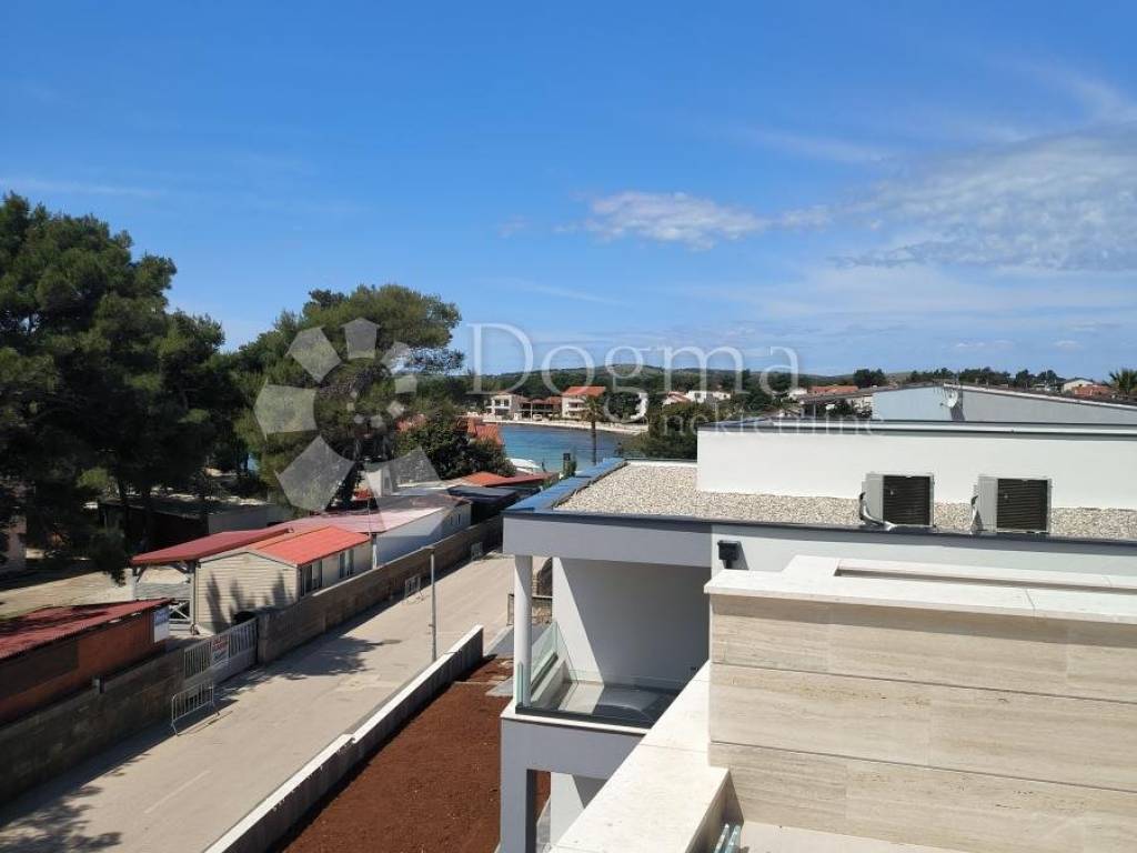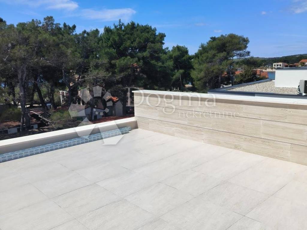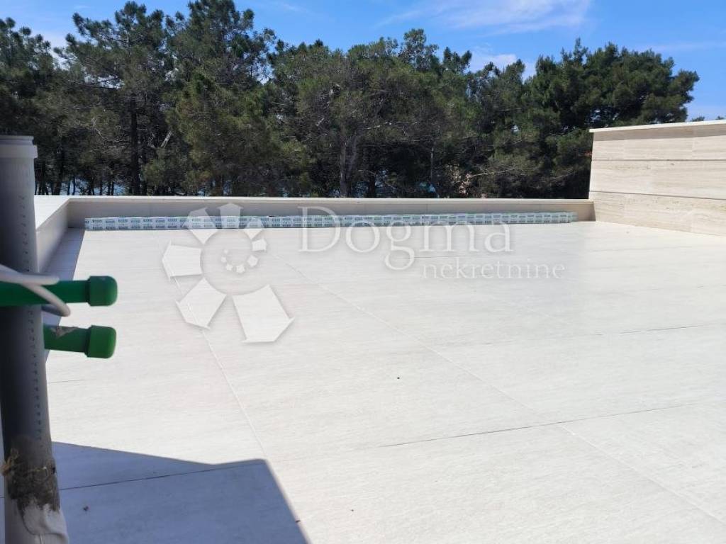 Prodaje se luksuzan stan u novogradnji na otoku Viru koji se nalazi na samo 50 metara od gradske plaže i mora. Stan se nalazi na 1. katu potpuno nove zgrade te je ukupne korisne površine 110m2. Stan se sastoji od dvije etaže. Na donjoj etaži se nalazi prostrani open space prostor kuhinje i dnevnog boravka, dvije klimatizirane spavaće sobe, moderno uređeno kupatilo, hodnik te terase od 13m2. Na gornjoj etaži se nalazi jedna klimatizirana spavaća soba s kupatilom te prostrana terasa s ljetnom kuhinjom i jacuzzijem s koje se pruža zapanjujući i opuštajući pogled na more i borove.