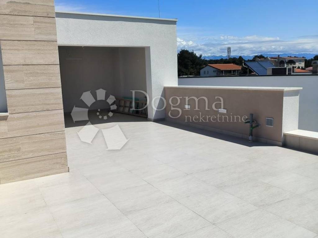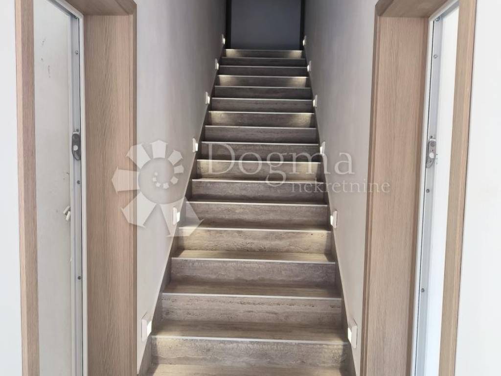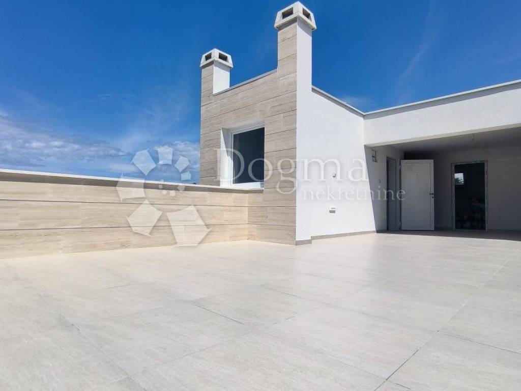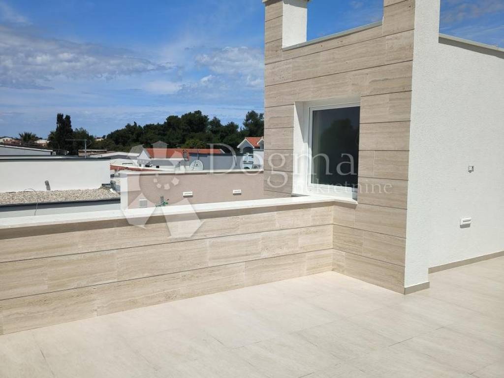 Prodaje se luksuzan stan u novogradnji na otoku Viru koji se nalazi na samo 50 metara od gradske plaže i mora. Stan se nalazi na 1. katu potpuno nove zgrade te je ukupne korisne površine 110m2. Stan se sastoji od dvije etaže. Na donjoj etaži se nalazi prostrani open space prostor kuhinje i dnevnog boravka, dvije klimatizirane spavaće sobe, moderno uređeno kupatilo, hodnik te terase od 13m2. Na gornjoj etaži se nalazi jedna klimatizirana spavaća soba s kupatilom te prostrana terasa s ljetnom kuhinjom i jacuzzijem s koje se pruža zapanjujući i opuštajući pogled na more i borove.