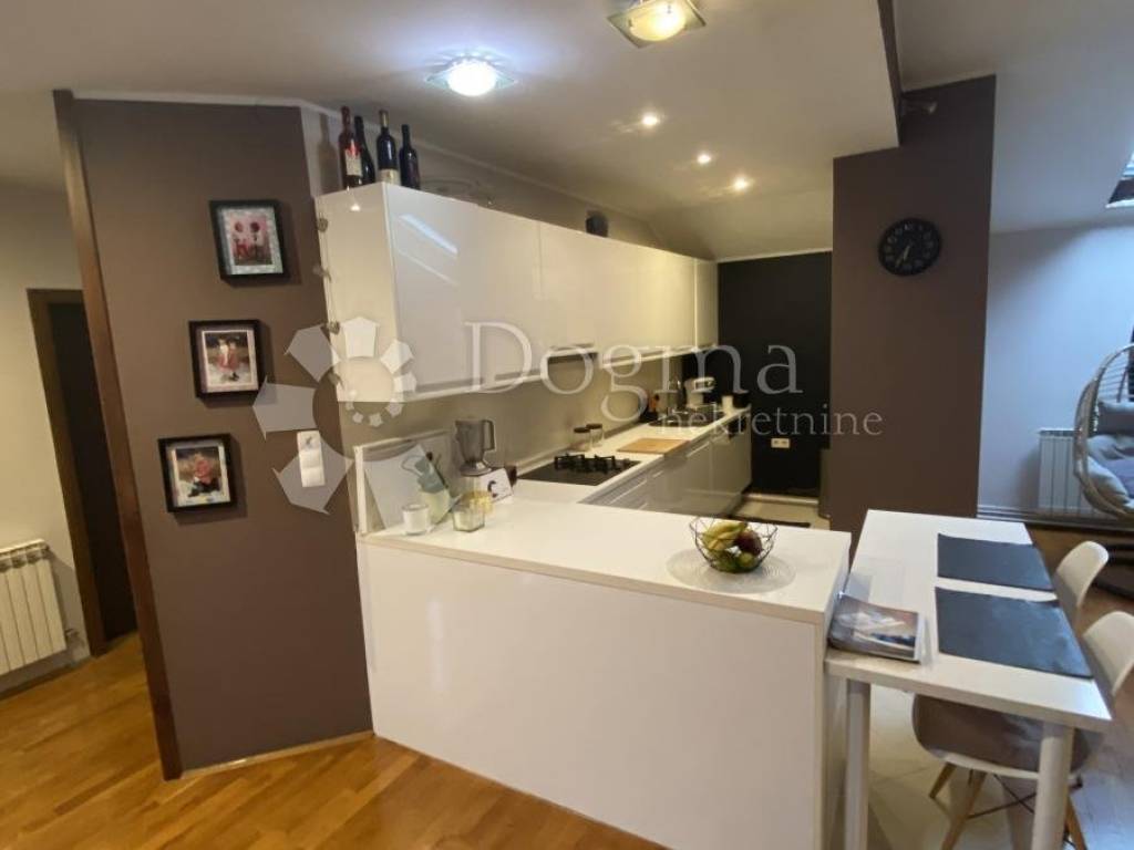 No, prava raskoš ove nekretnine nalazi se na prvom katu, gdje se smjestio prekrasan stan. S 120 kvadratnih metara prostora, ovaj stan će vas oduševiti svojim luksuzom i funkcionalnošću. Uz 2 balkona, pruža predivan pogled na okolicu i obilje svjetlosti. Stan se sastoji od 2 prostrane spavaće sobe, 1 moderno uređene kupaonice s WC-om te unutarnjeg stubišta koje omogućuje lagan pristup oba kata.