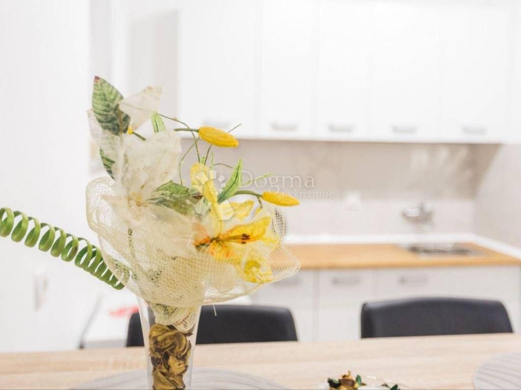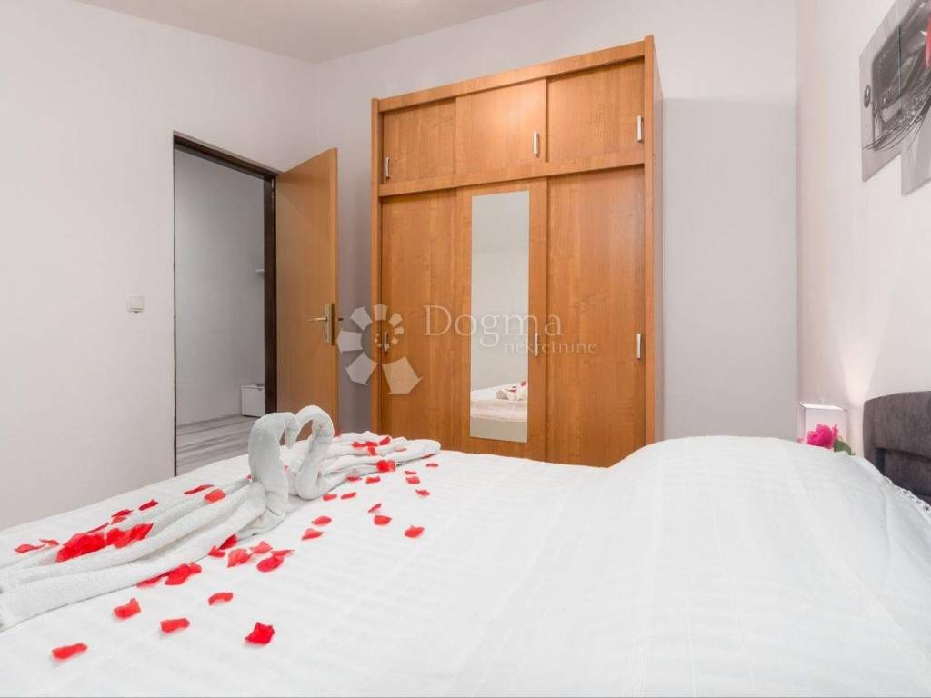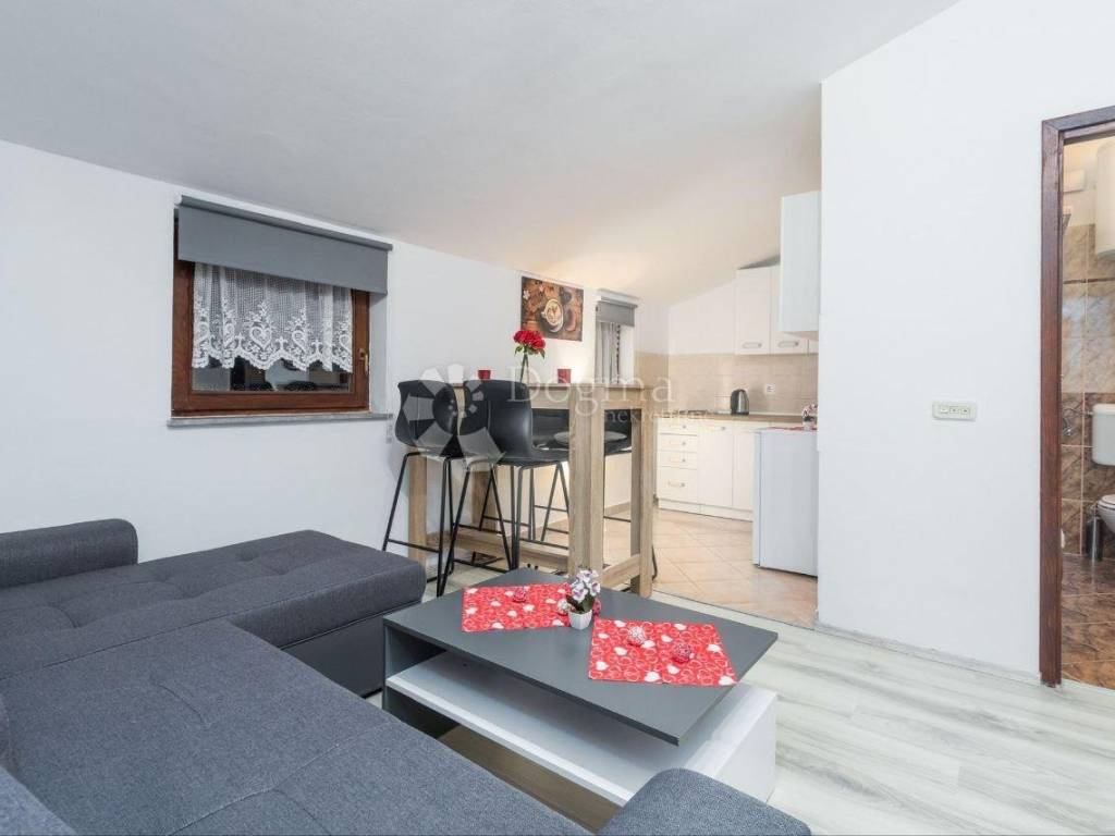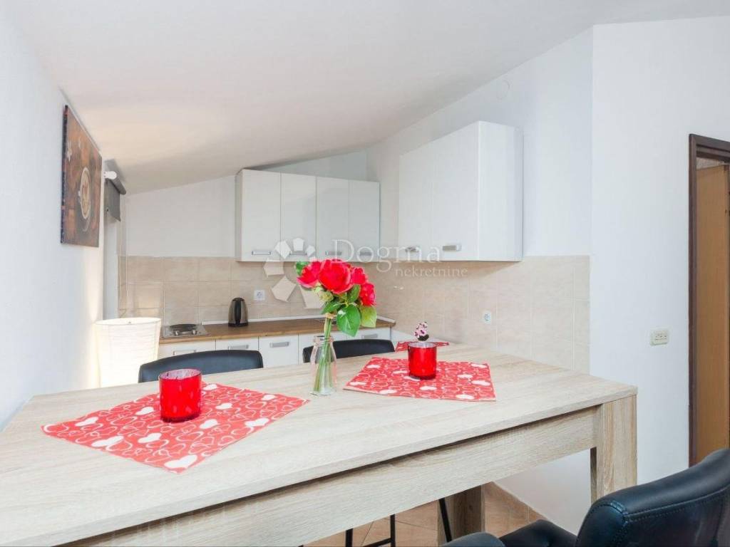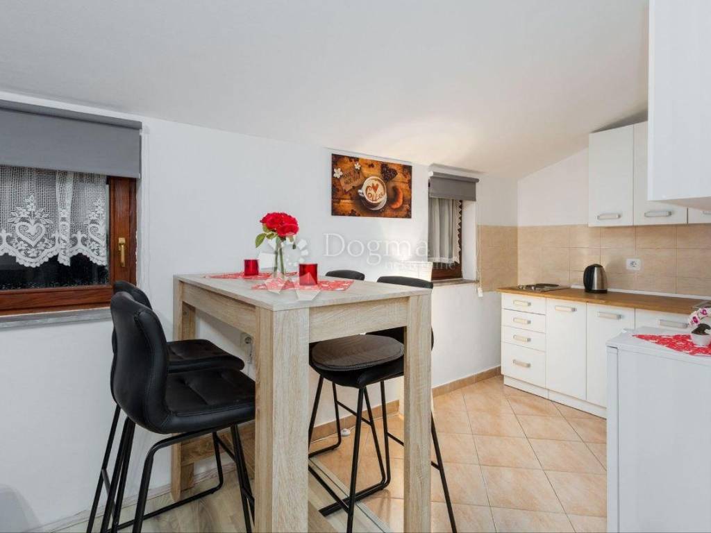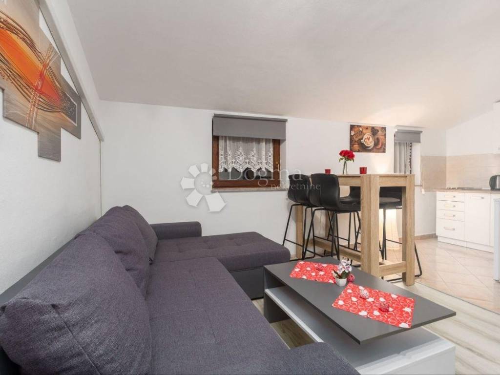Prizemlje se sastoji od dvije spavaće sobe sa velikim dnevnim boravkom, blagovaonom, kuhinjom , kupaona i velika terasa. Svi apartmani imaju poseban ulaz i povezani vanjskim stubištem. Na katu dva jednosobna s dnevnim boravkom i u visokom potkrovlju, jedan jednosobni i jedan dvosobni apartman s predivnim pogledom na more.