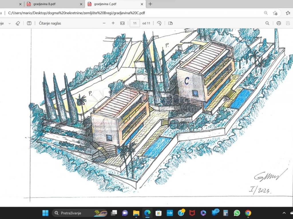 Uz slike je priloženi tlocrti i prikaz planirane kuće. Sama lokacija je dobra, u blizini je Opatije, mirno je i puno zelenila.
