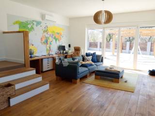 U prostoru dnevnog boravka na podovim se nalazi "seljački pod", kvalitetan hrastov parket, stolarija je PVC.
