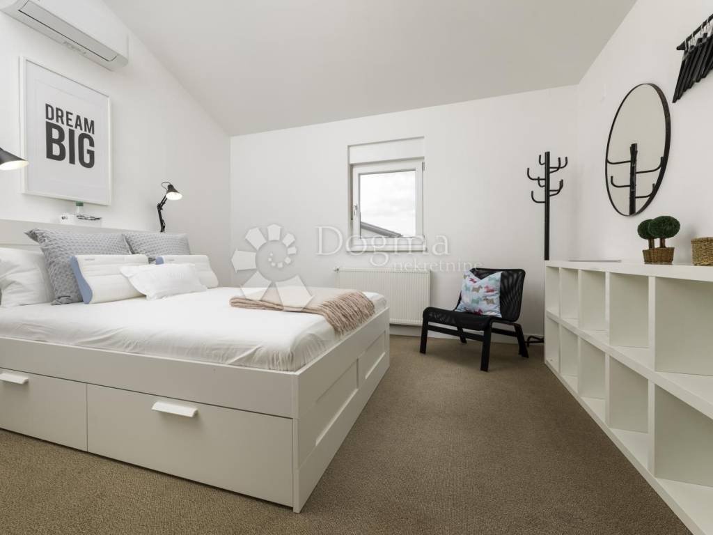 Na katu se nalazi velika spavaća soba s vlastitom kupaonicom i velikom walk in garderobom, te još dvije spavaće sobe, koje su trenutno spojene i jedna je pretvorena u sobu za zabavu, te velika kupaonica.