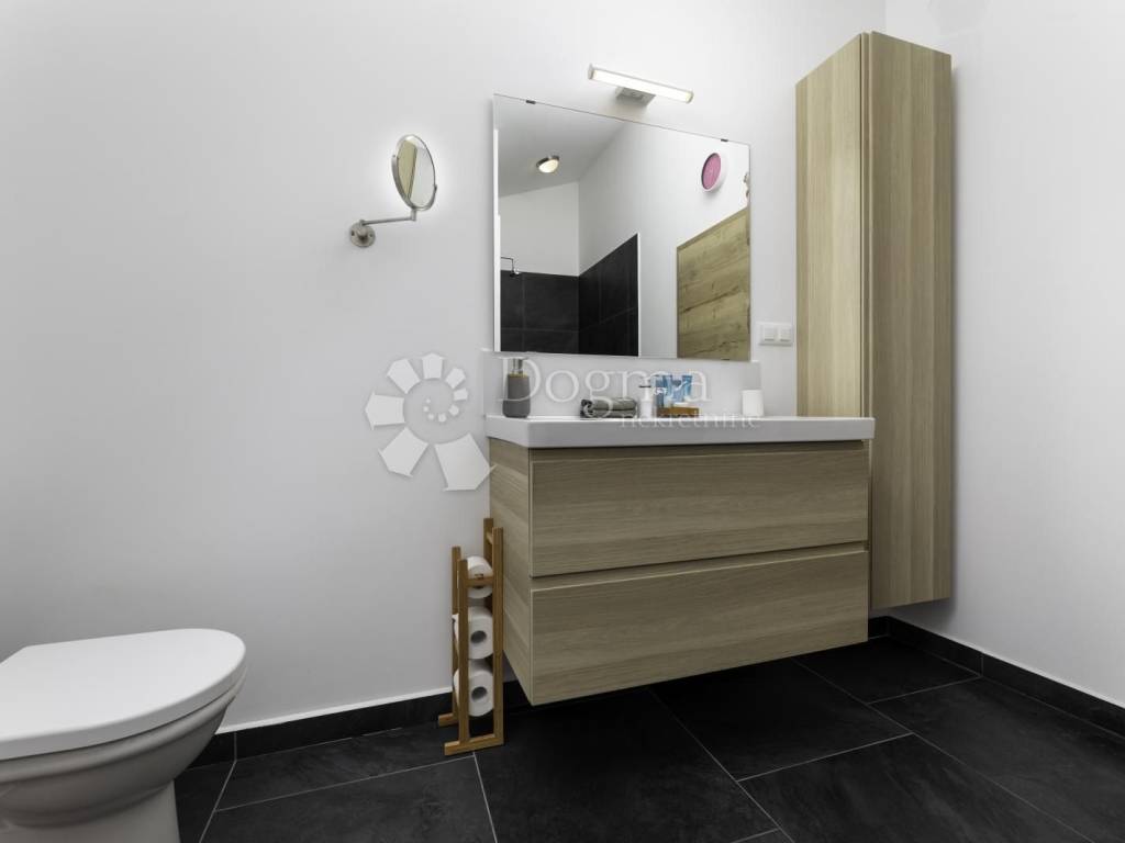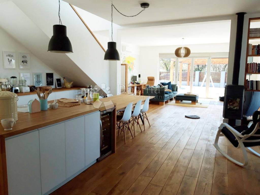 Okućnica se prostire na 1250 m2, u potpunosti uređenih, s velikim sunčalištem i terasom te s grijanim bazenom.