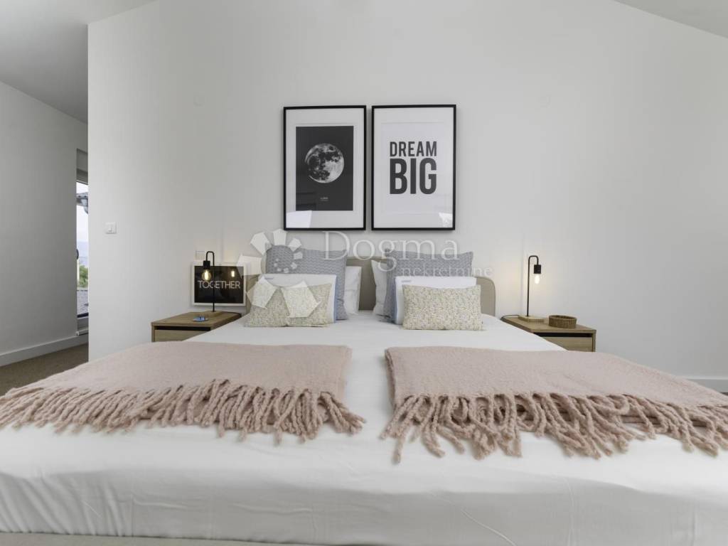 Ova moderna vila s bazenom i velikom okućnicom nalazi se u središtu otoka Krka.